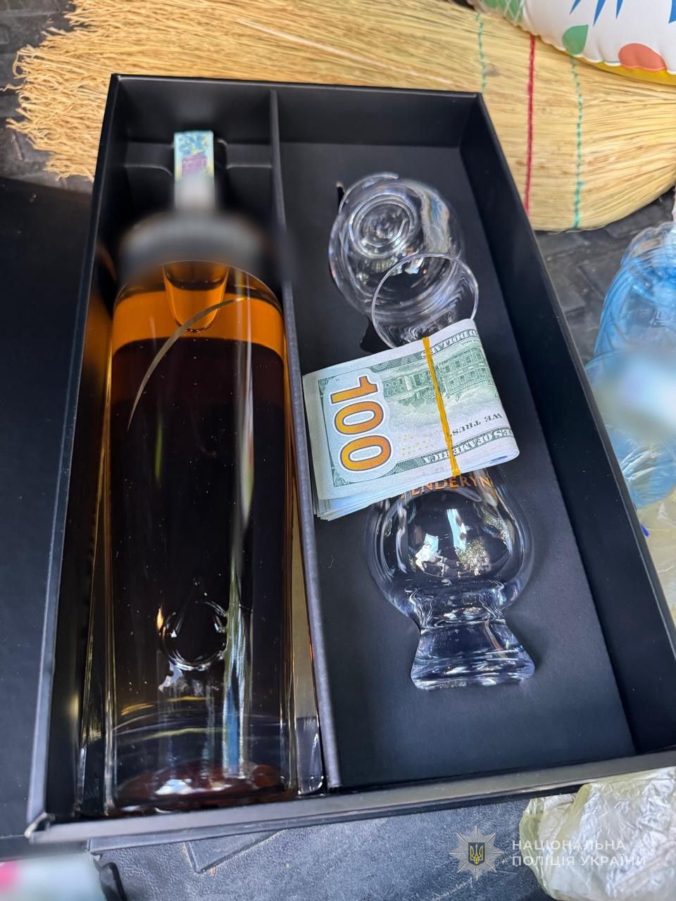 Поліцейські затримали зловмисника у процесуальному порядку після отримання ним неправомірної вигоди у власній автівці. Для маскування хабаря, останній велів жінці помістити кошти в коробку з алкоголем. Слідчі вилучили гроші, а також мобільний телефон та авто посадовця в якості речових доказів.
