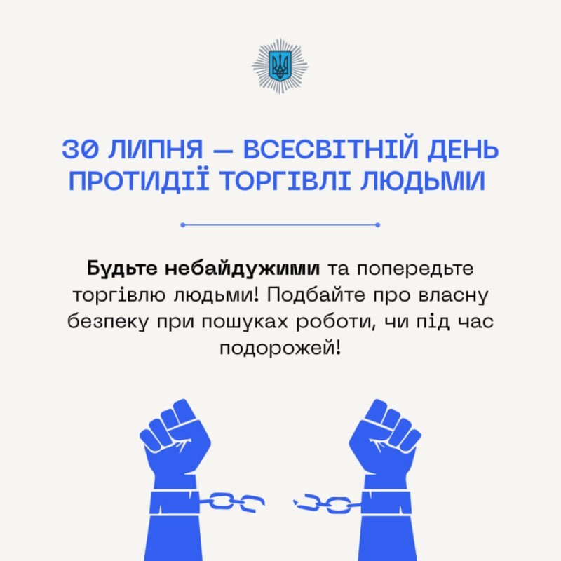 30 липня - Всесвітній день протидії торгівлі людьми