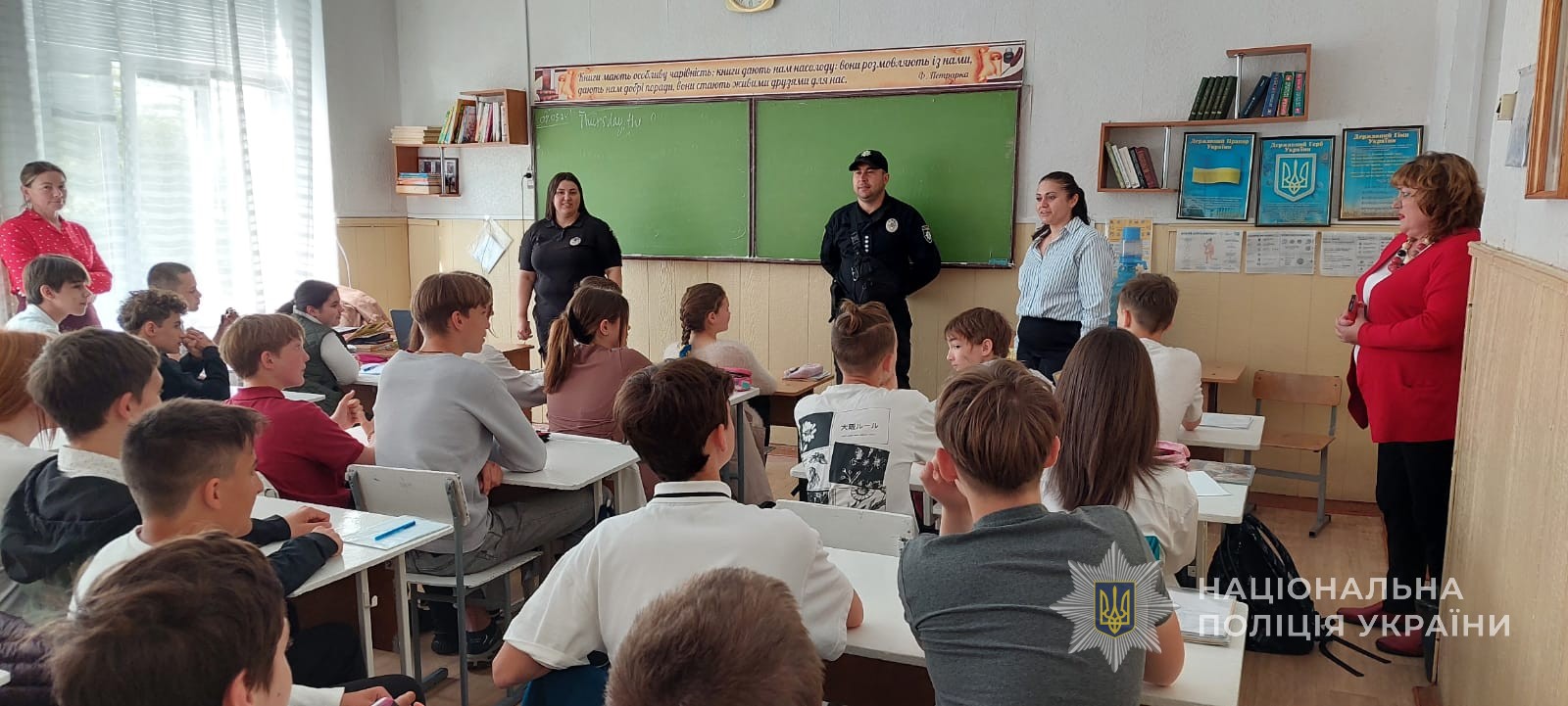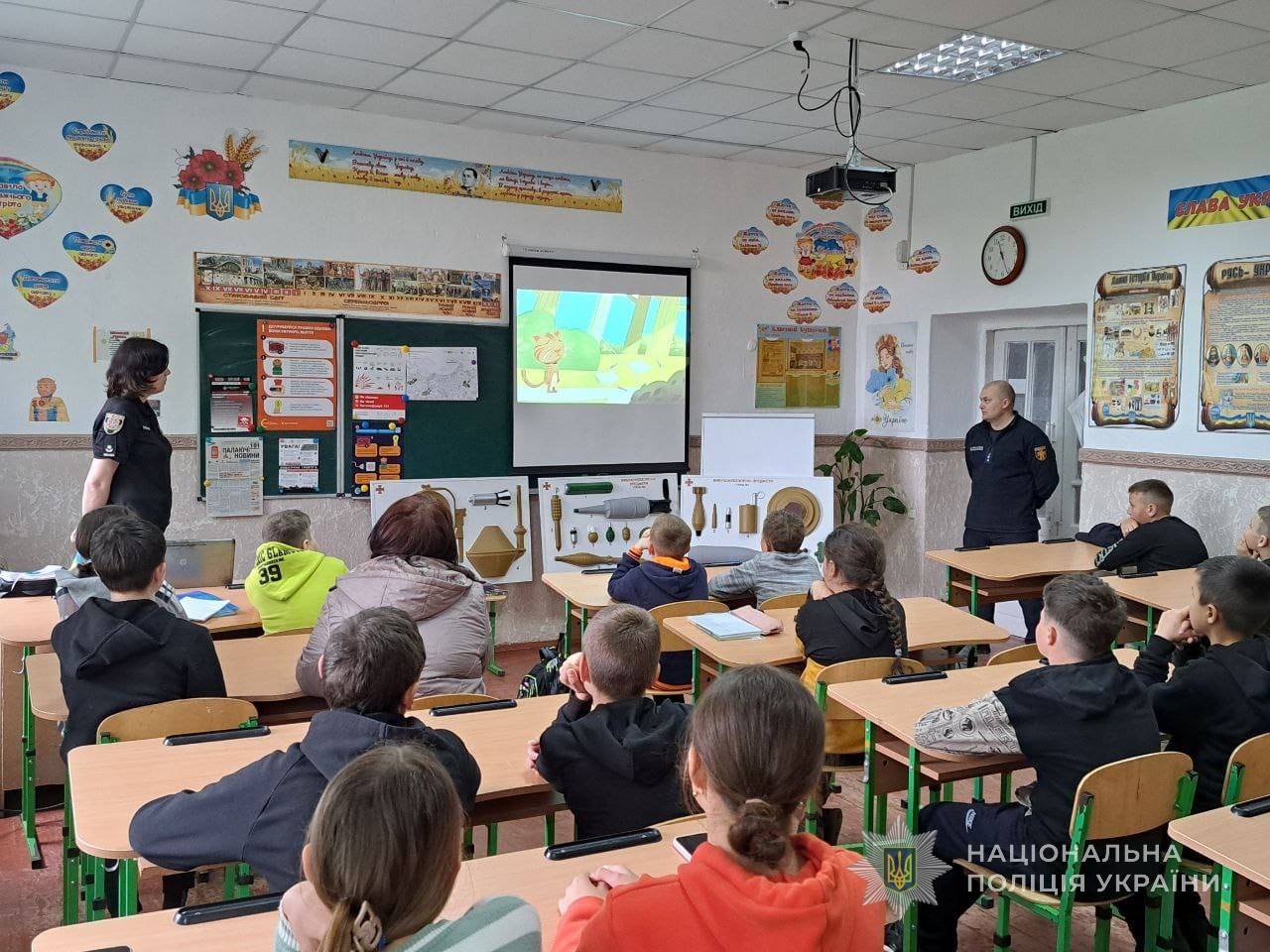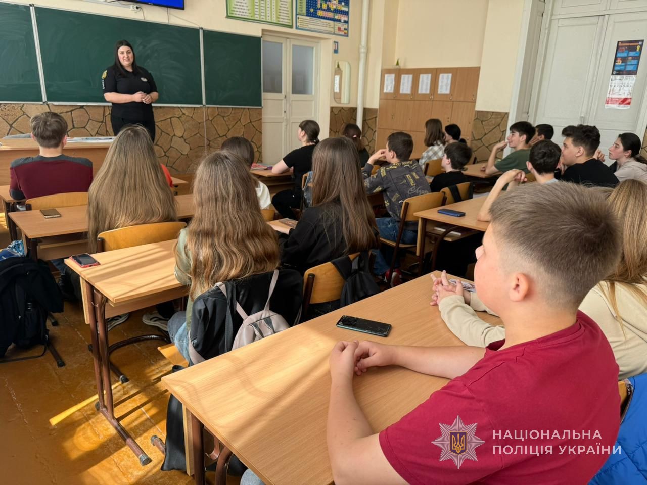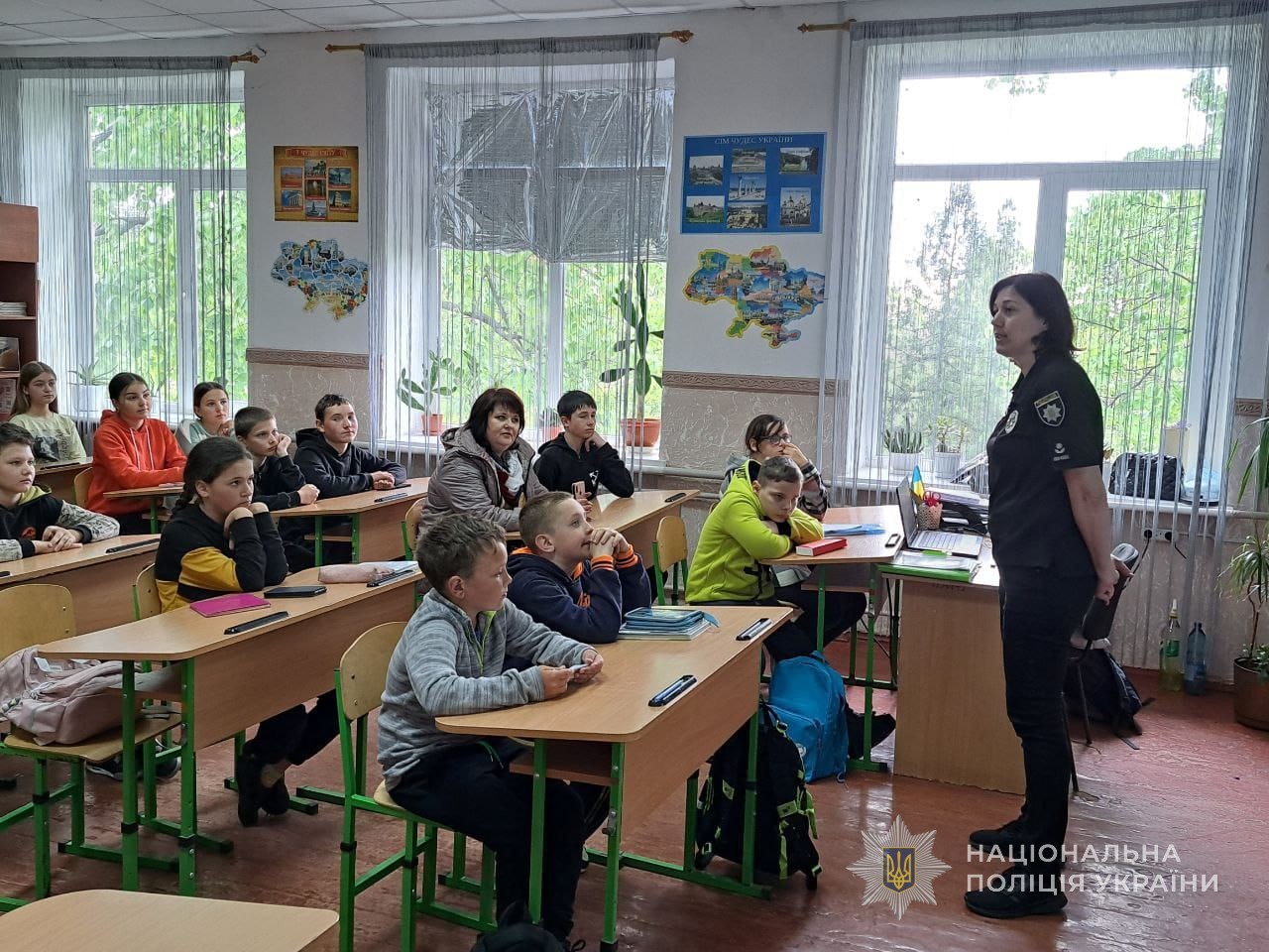 На уроках зі школярами початкових та старших класів правоохоронці обговорили питання безпеки на природі, у кіберпросторі, побуті, зокрема розповіли про прояви домашнього насильства й алгоритм дій під час подібних ситуацій.