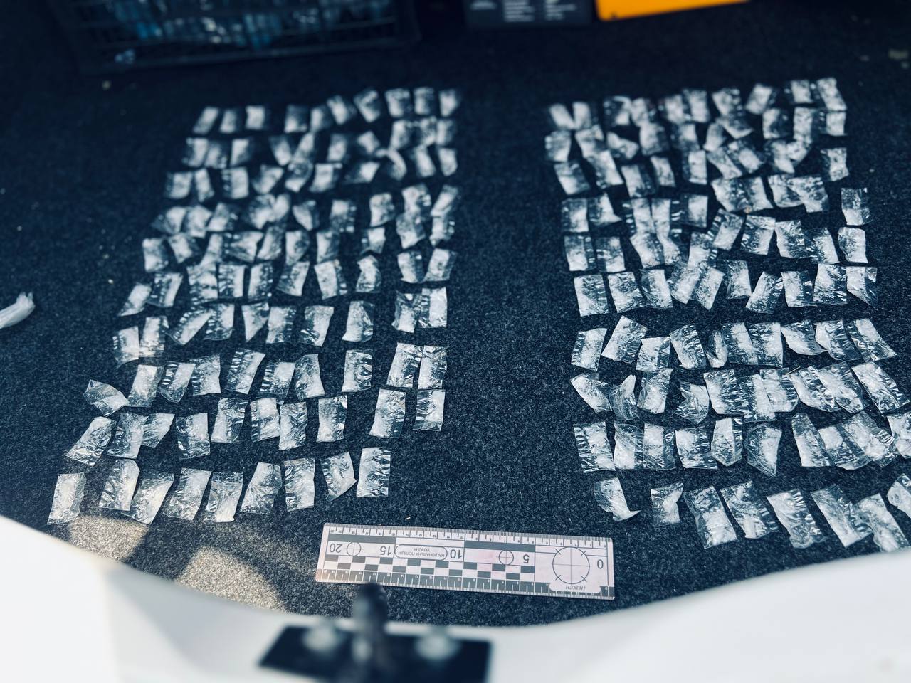 Надалі під час обшуку за місцем мешкання зловмисника було вилучено 488 згортків з аналогічним вмістом, що й у попередніх, 7 – з невідомою кристалічною речовиною та 10 – з речовиною рослинного походження зеленого кольору, зі слів підозрюваного – гашишем. Вилучене поліцейські скерували на експертизу.
