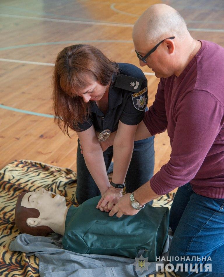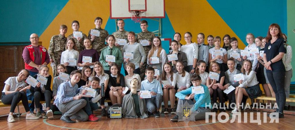 Практичними навичками старшокласники оволодівали за допомогою поліцейських та представників медичного центру.