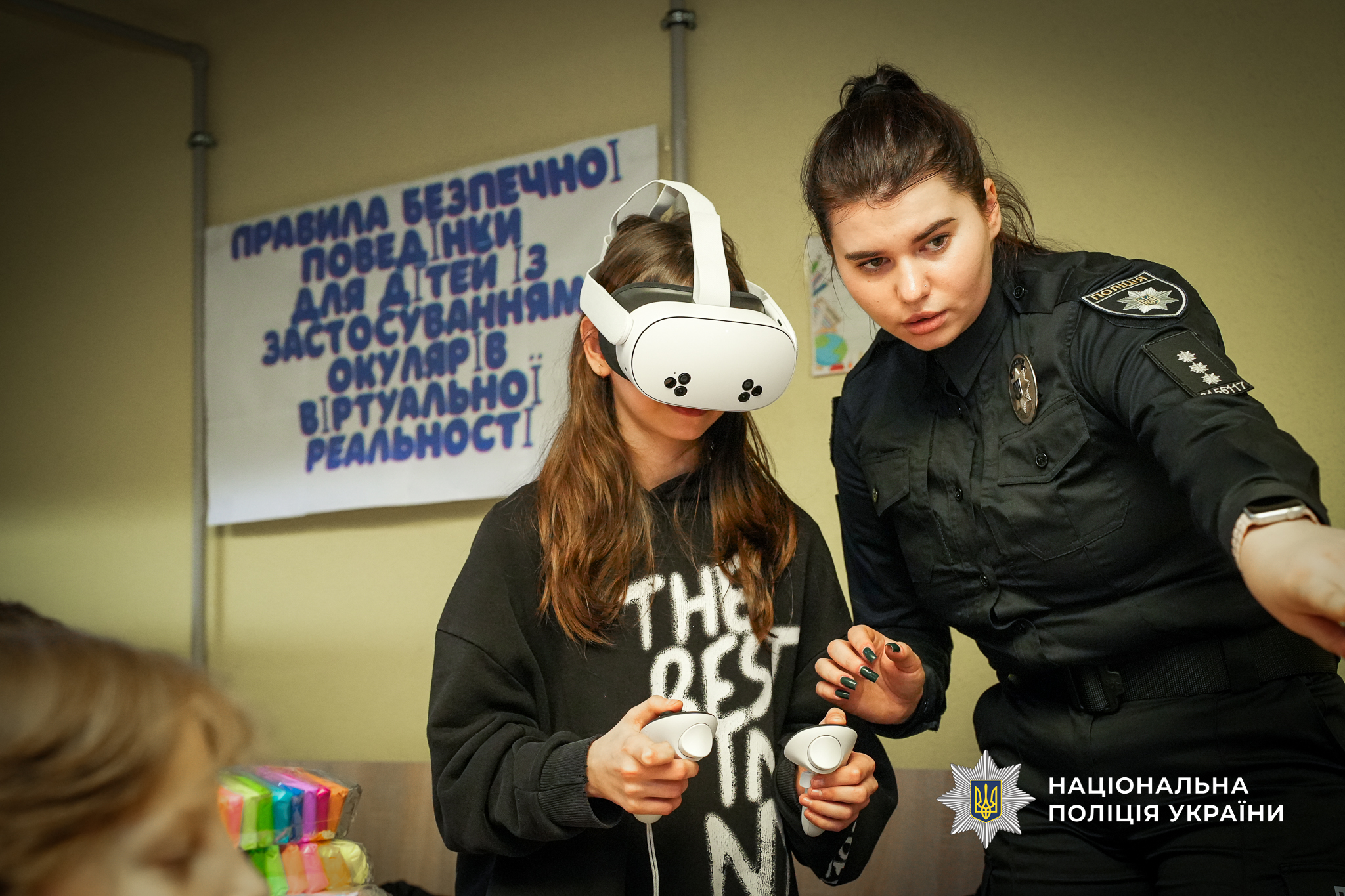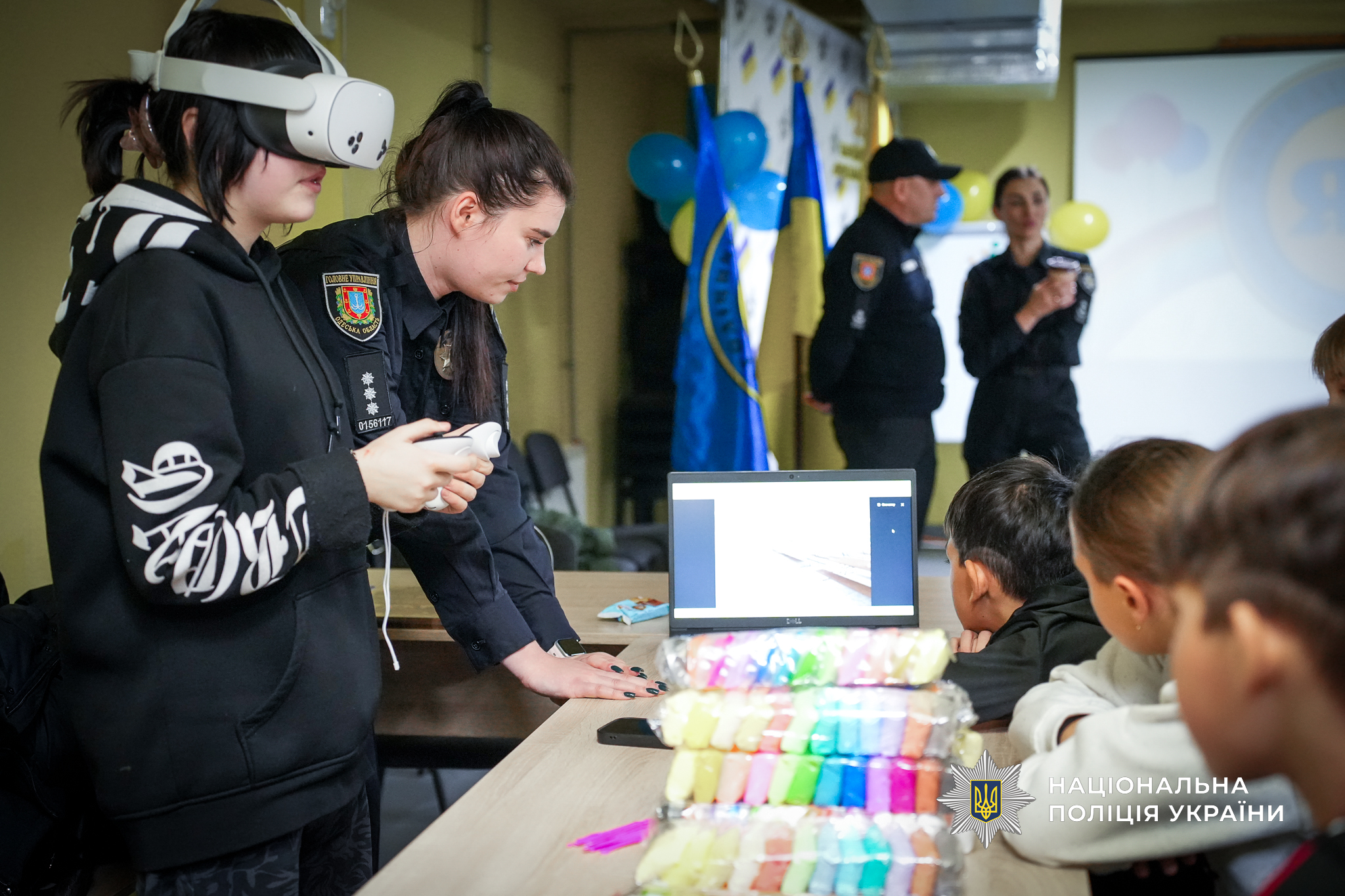 Правоохоронці організували інтерактивну VR-локацію, де за допомогою окулярів віртуальної реальності діти могли потрапити у змодельовані дорожні ситуації та потренувати навички безпечної поведінки в умовах, максимально наближених до реальних.