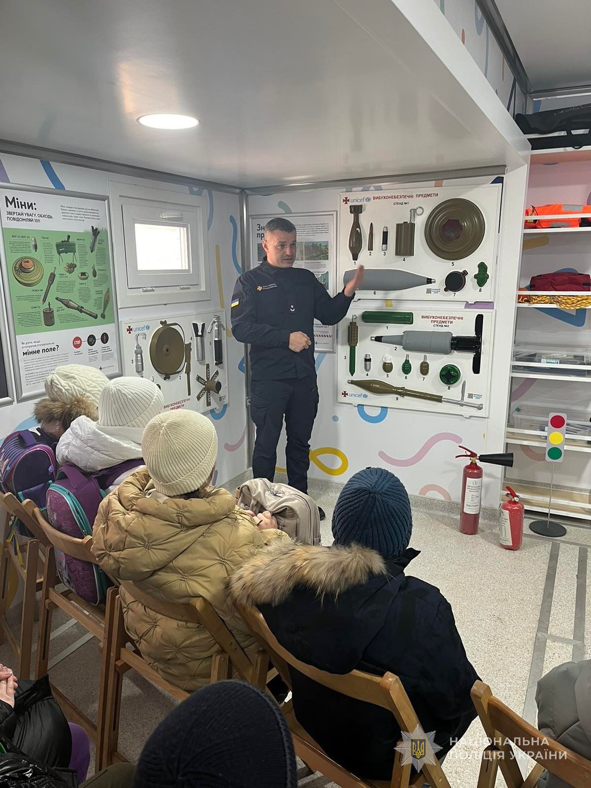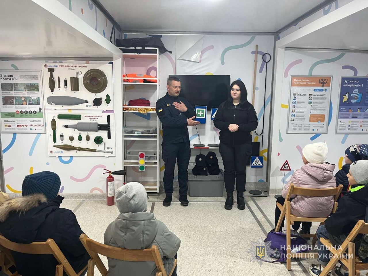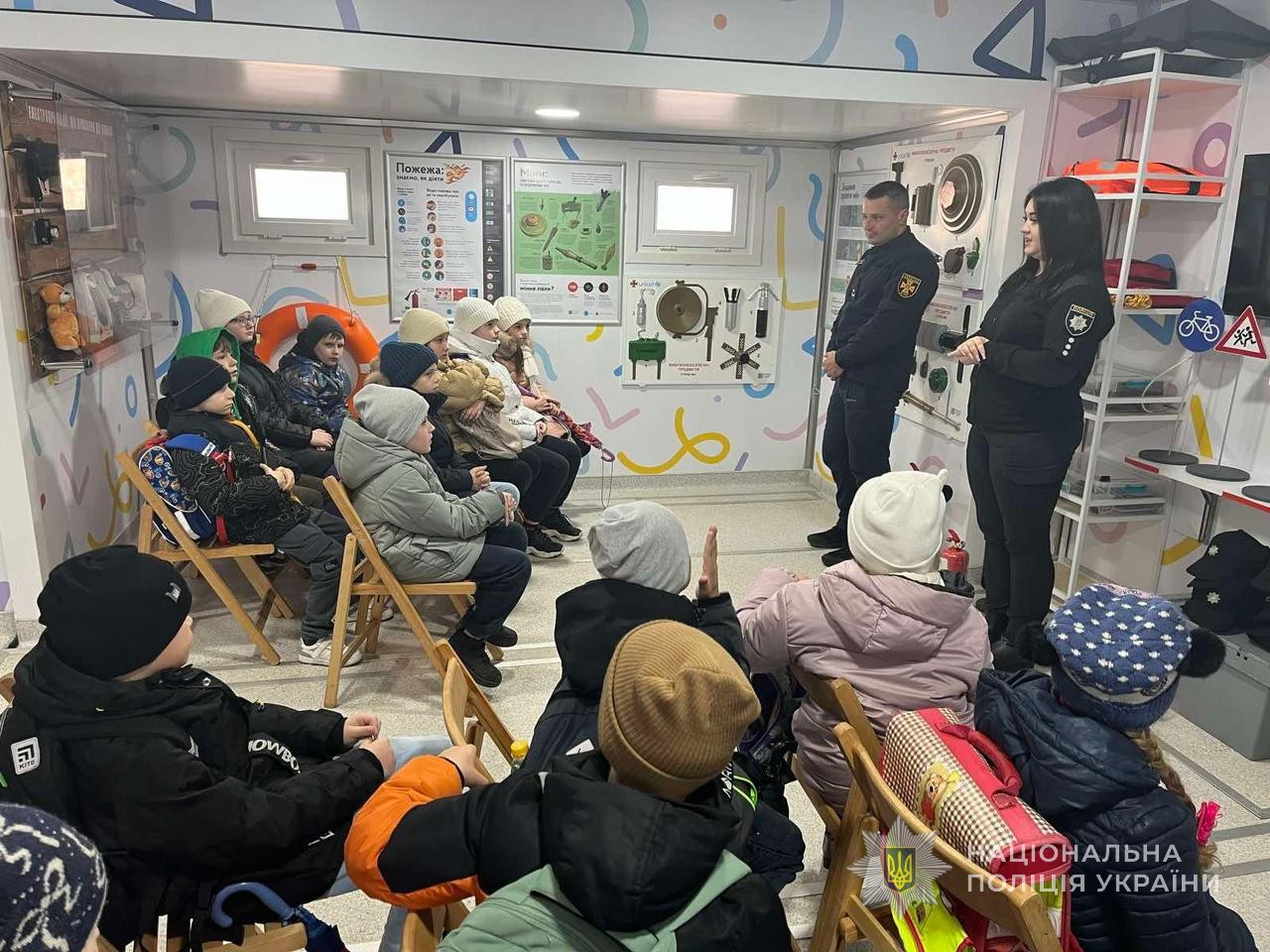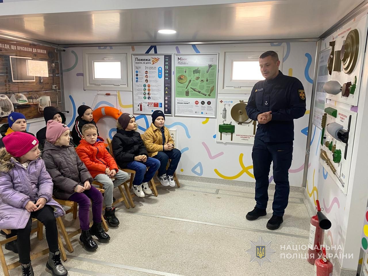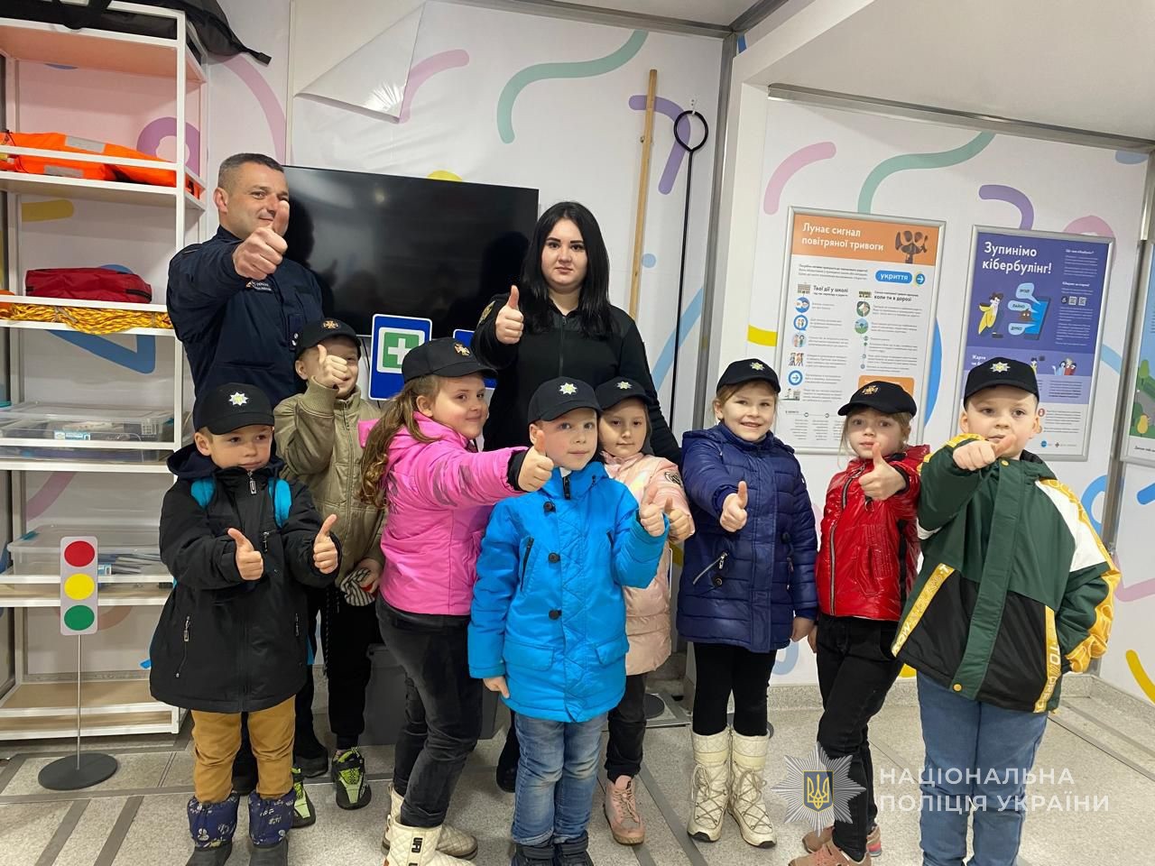 Поліцейські разом з рятувальниками розповіли малечі про правила безпечної поведінки в умовах війни, мінну та пожежну безпеку, а також нагадали правила дорожнього руху.