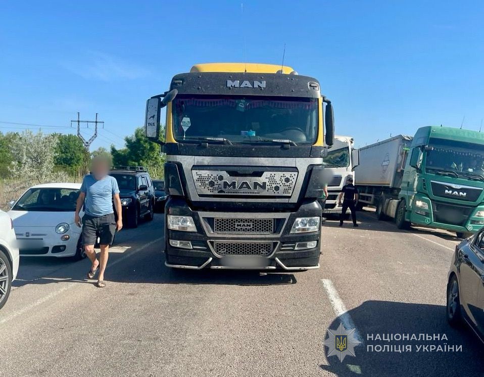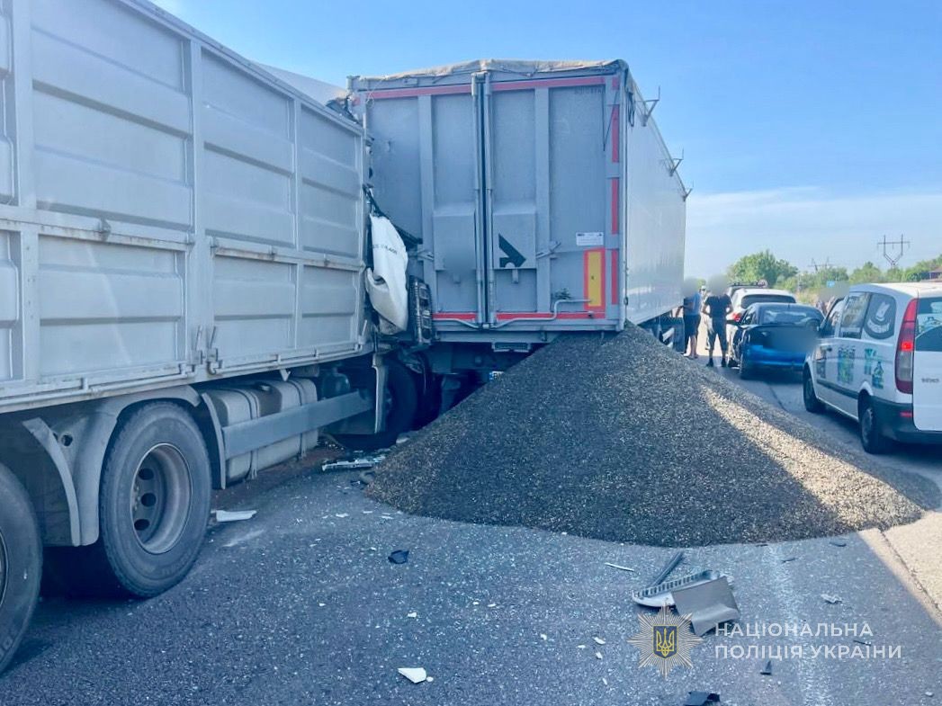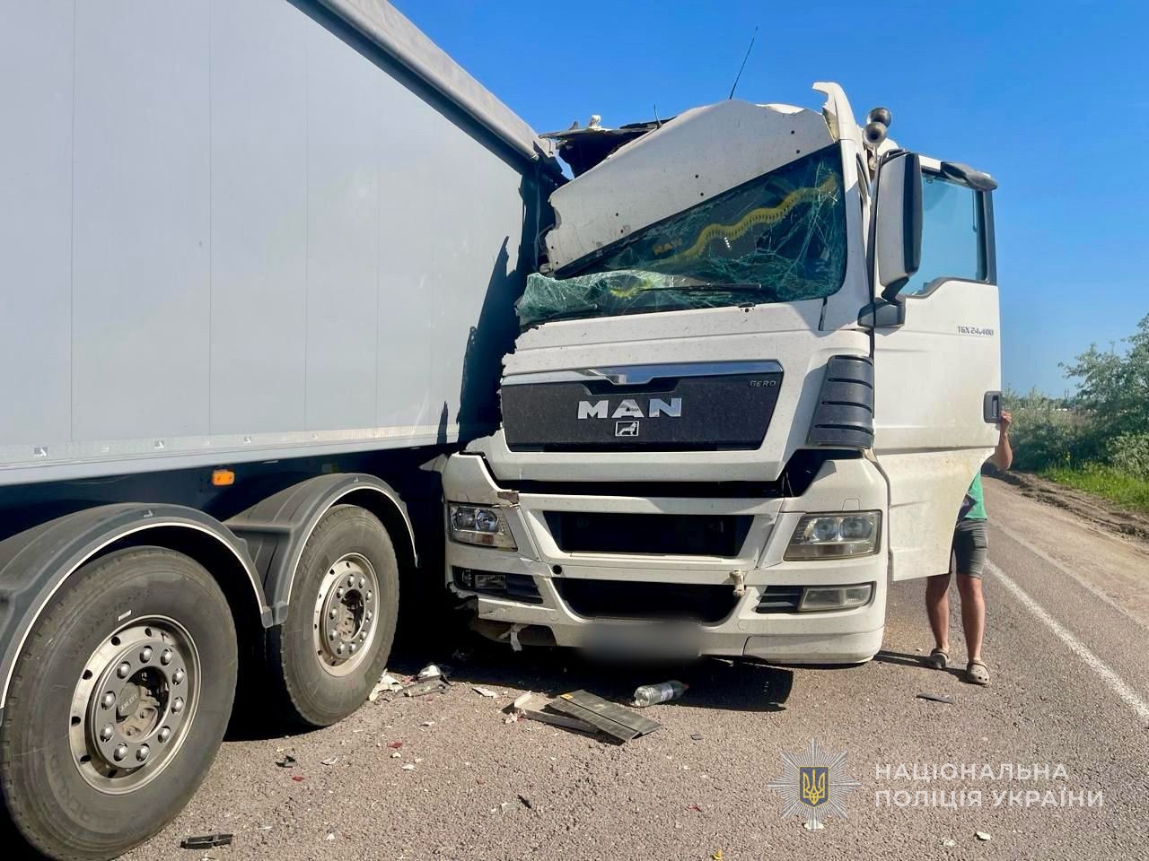 На місці працюють поліцейські. Попередньо водії вантажівок медичної допомоги не потребують.