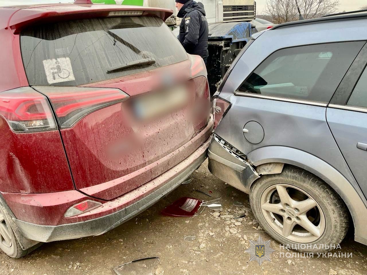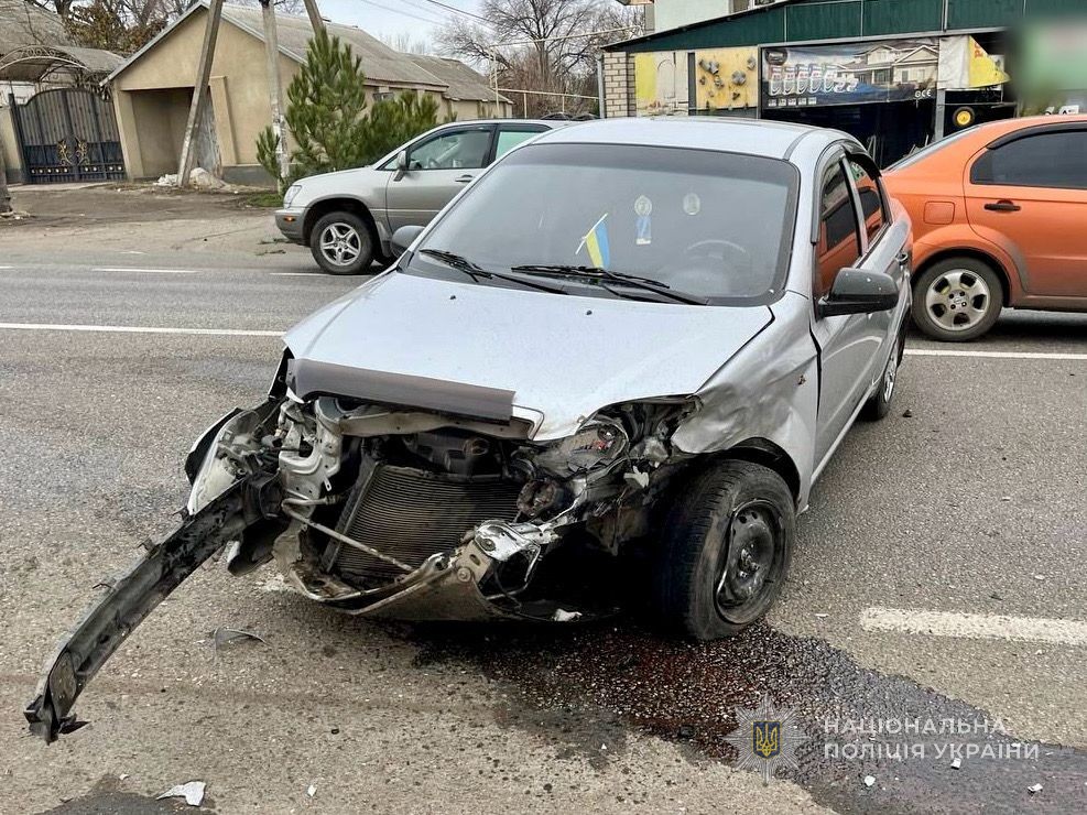 Попередньо встановлено, що водій легкового автомобіля, рухаючись у напрямку міста Одеси, виїхав на зустрічну смугу і допустив зіткнення із легковиком, що рухався йому назустріч. Від зіткнення механічних пошкоджень зазнали ще п’ять припаркованих на узбіччі автомобілів. Попередньо, унаслідок дорожньо-транспортної пригоди ніхто не постраждав.