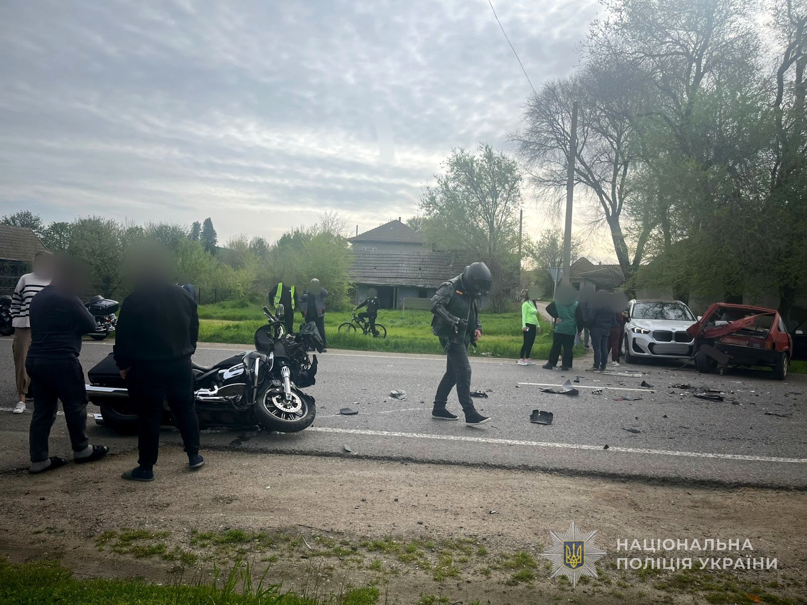 Зіштовхнулися два автомобілі та мотоцикл. До лікарні доставлено трьох людей.