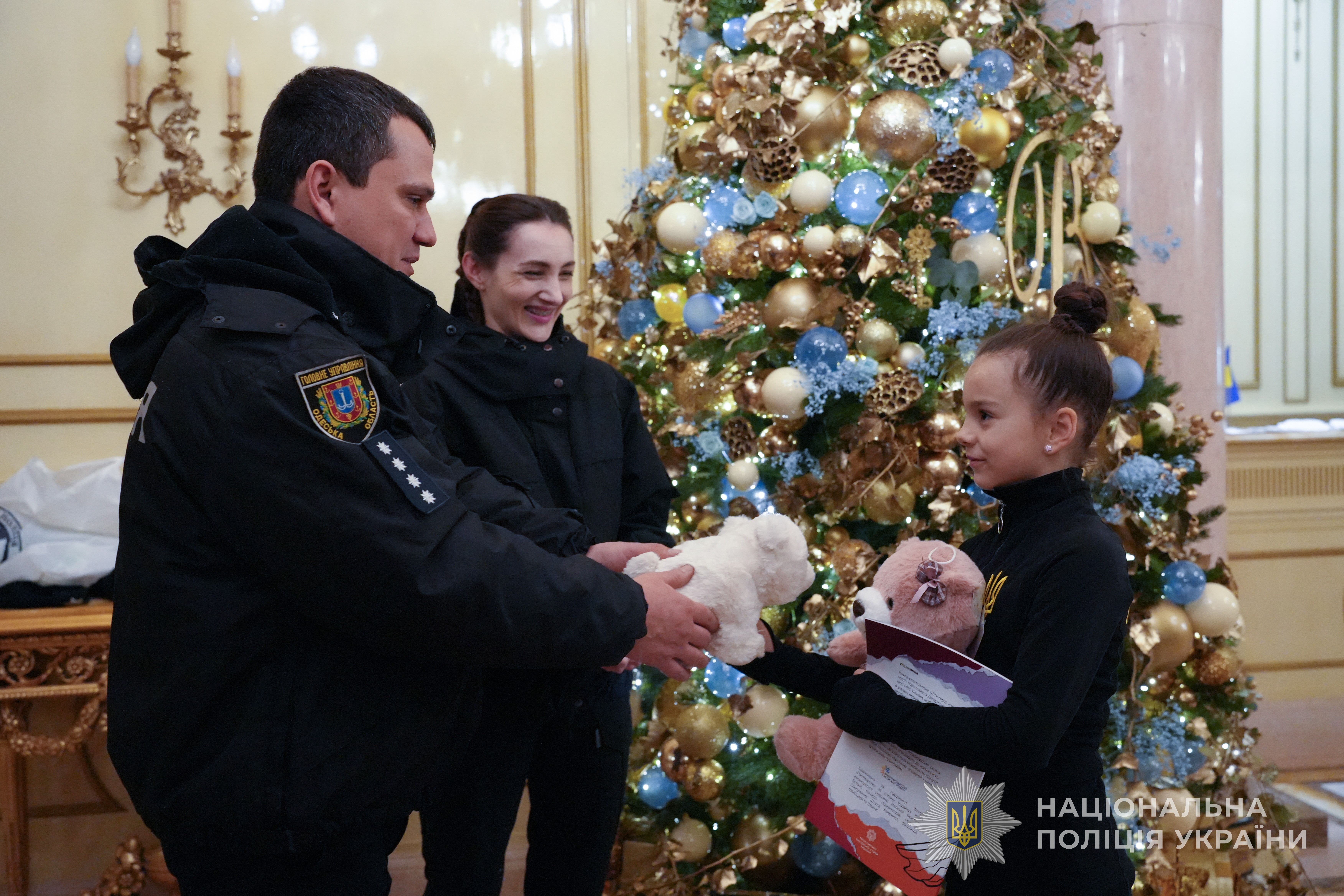 Донечці поліцейського Одещини, маленькій Саші Паскаль до Дня святого Миколая від МВС України вручили особливий подарунок