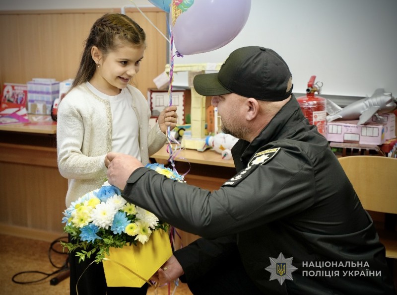 «Я вітаю тебе, сонечко, з Днем народження і бажаю міцного здоров’я, щасливого дитинства та втілення найзаповітніших мрій. Нехай твої оченята завжди сяють радістю» - побажав Мірі полковник поліції.