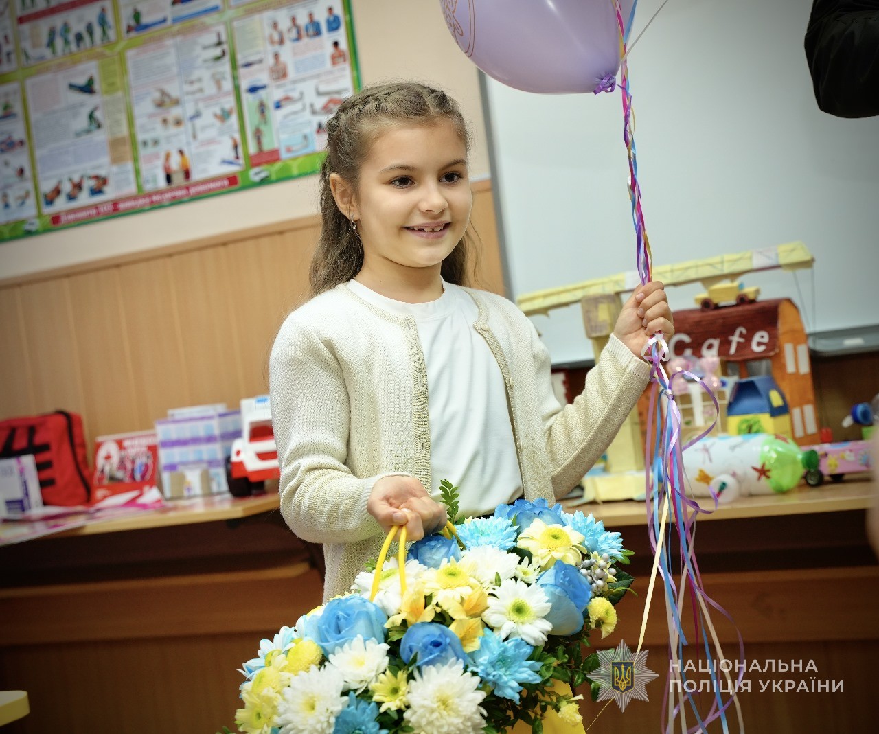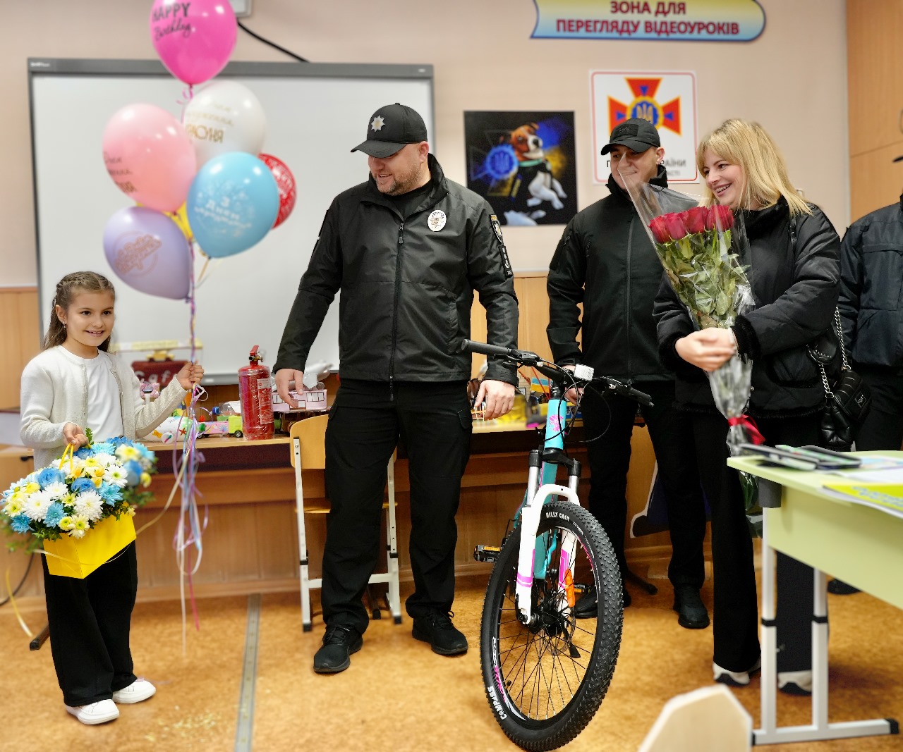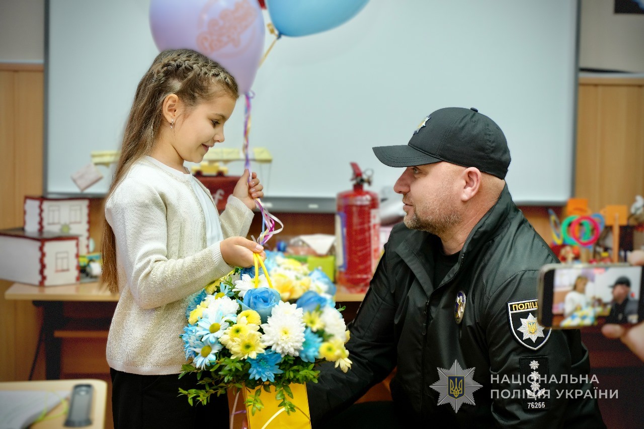 З самого ранку до неї у школу завітав начальник Головного управління Національної поліції в Одеській області Іван Жук і подарував іменинниці велосипед. Вона активна, спортивна дівчинка, тож такий подарунок їй дуже сподобався. Дитячим емоціям не було меж.