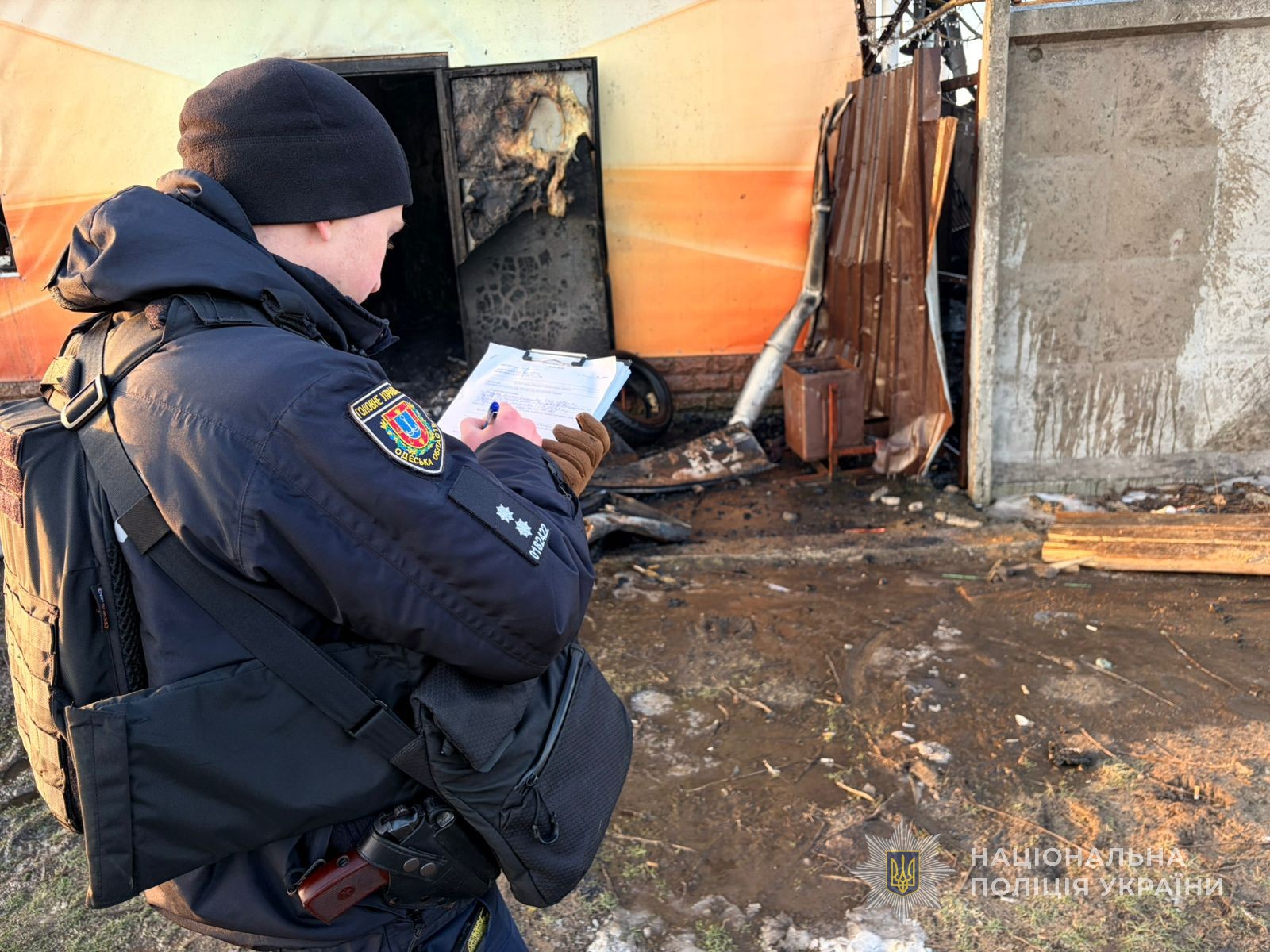 Поліцейські фіксують наслідки воєнного злочину, збирають докази, опитують людей, надають психологічну допомогу, забезпечують правопорядок.