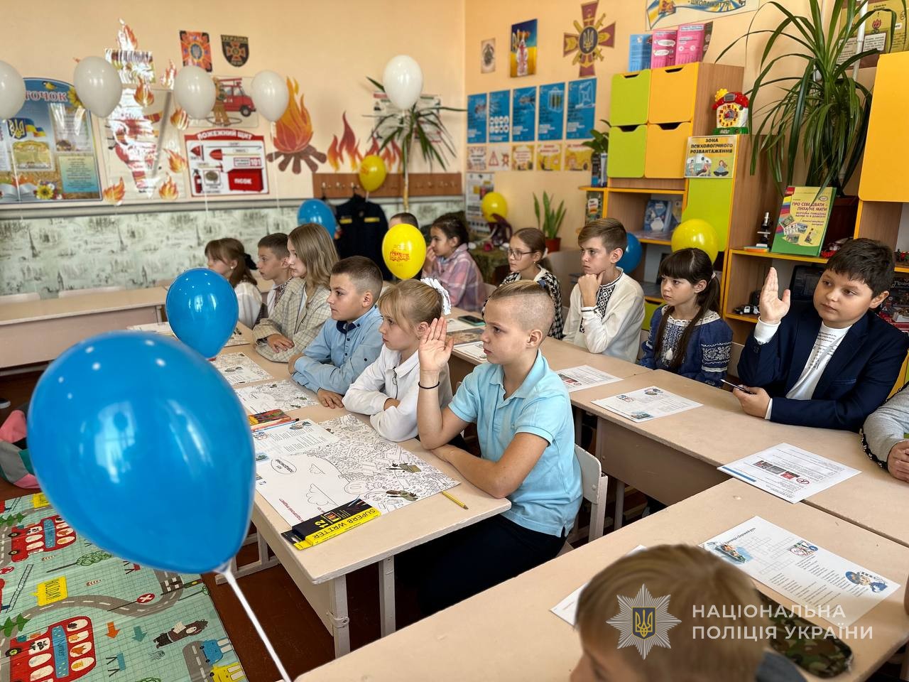 На першому уроці гості, серед яких були представники поліції, державної служби з надзвичайних ситуацій та педагоги, представляли тематичні зони за профілем. Зокрема, поліцейські ювенальної превенції Катерина Нігрецкул та Ліна Огороднюк презентували зону безпеки життєдіяльності. Вони нагадали першим відвідувачам класу безпеки правила дорожнього руху, правила катання на велосипедах та самокатах, і закликали не ігнорувати сигнал «Повітряна тривога». Також поліцейські розповіли учням, як правильно зателефонувати до екстрених служб, якщо у цьому виникла необхідність. Фахівчиня ДСНС ознайомила учнів зі стендами та навчальними посібниками, розташованими у зонах мінної та протипожежної безпеки, і нагадала, що при виявленні підозрілих предметів потрібно відійти від них на безпечну відстань та повідомити про це дорослим.