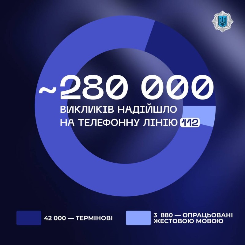 У своєму офіційному Telegram-каналі Міністр внутрішніх справ повідомив, що за чотири місяці роботи Служби 112 надійшло майже 280 тисяч викликів.