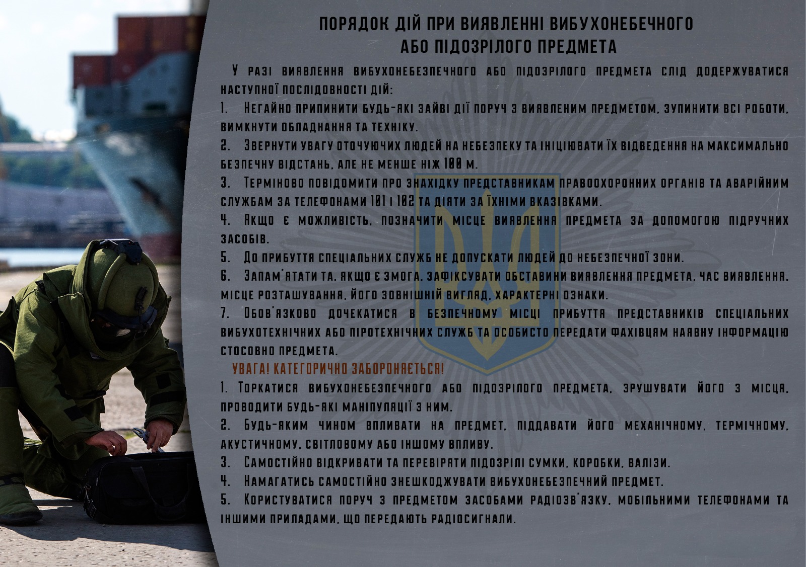 Ідентифікація вибухонебезпечних предметів та алгоритм дій при їх виявленні