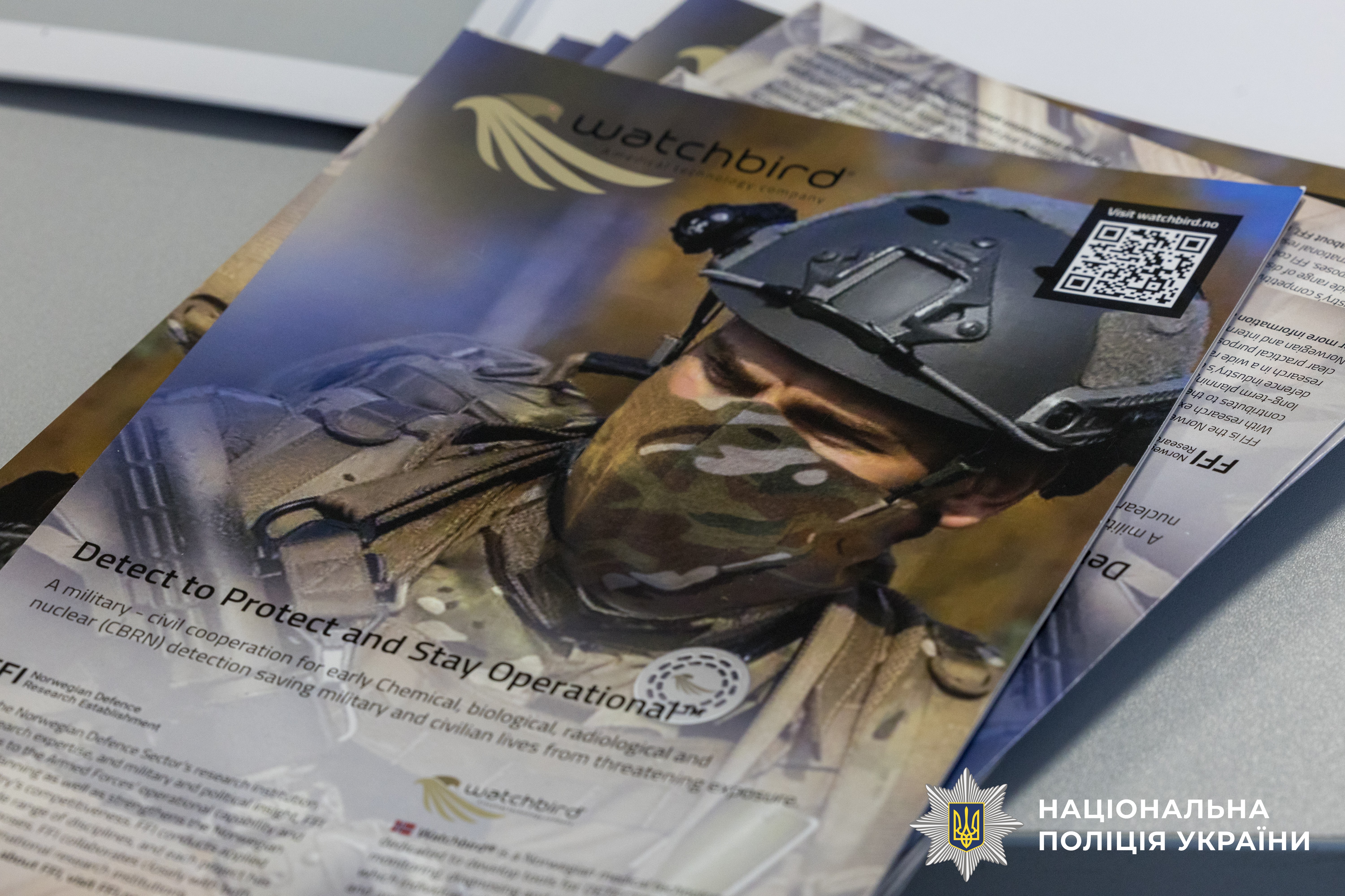 У рамках співпраці представники компанії «Watchbird AS» привезли тактичні набори, які включають багатоцільові захисні пристрої для дихання. Захисні маски будуть ефективно використовуватись для потреб поліцейських підрозділів, як на фронті, так і в повсякденній службі.