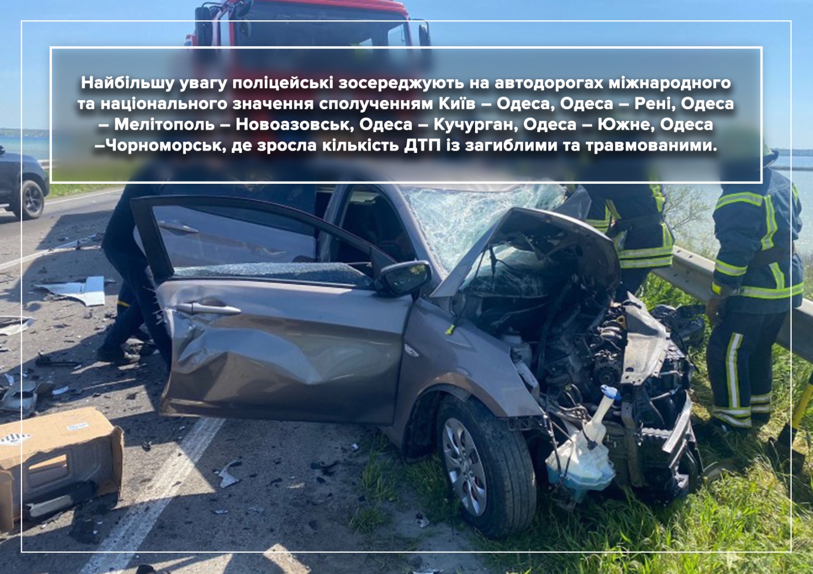 Працівники сектору реагування патрульної поліції постійно слідкують за дорожньою безпекою на автошляхах. Найбільшу увагу поліцейські зосереджують на автодорогах міжнародного та національного значення сполученням Київ – Одеса, Одеса – Рені, Одеса – Мелітополь – Новоазовськ, Одеса – Кучурган, Одеса – Южне, Одеса –Чорноморськ, де зросла кількість ДТП із загиблими та травмованими.