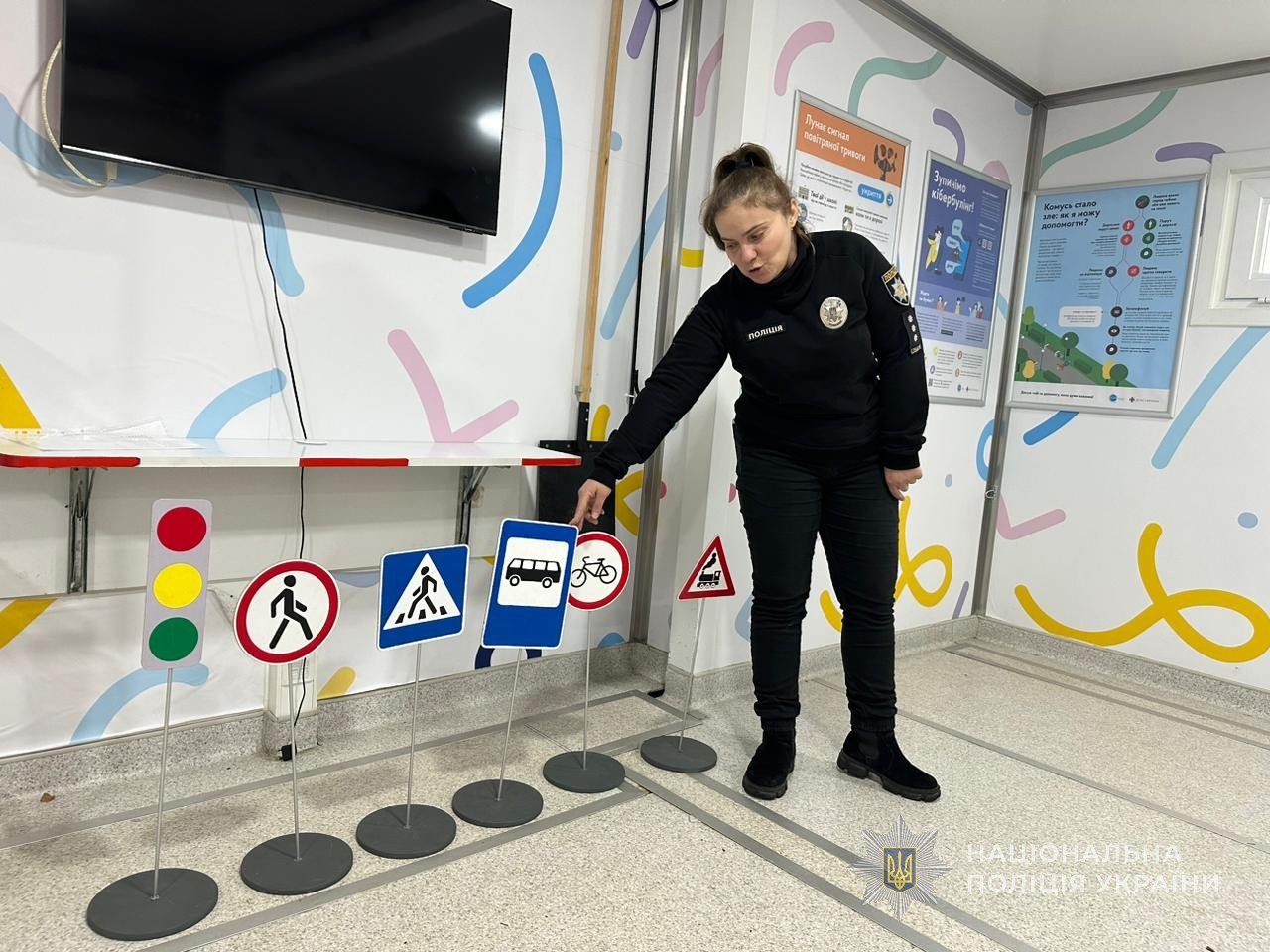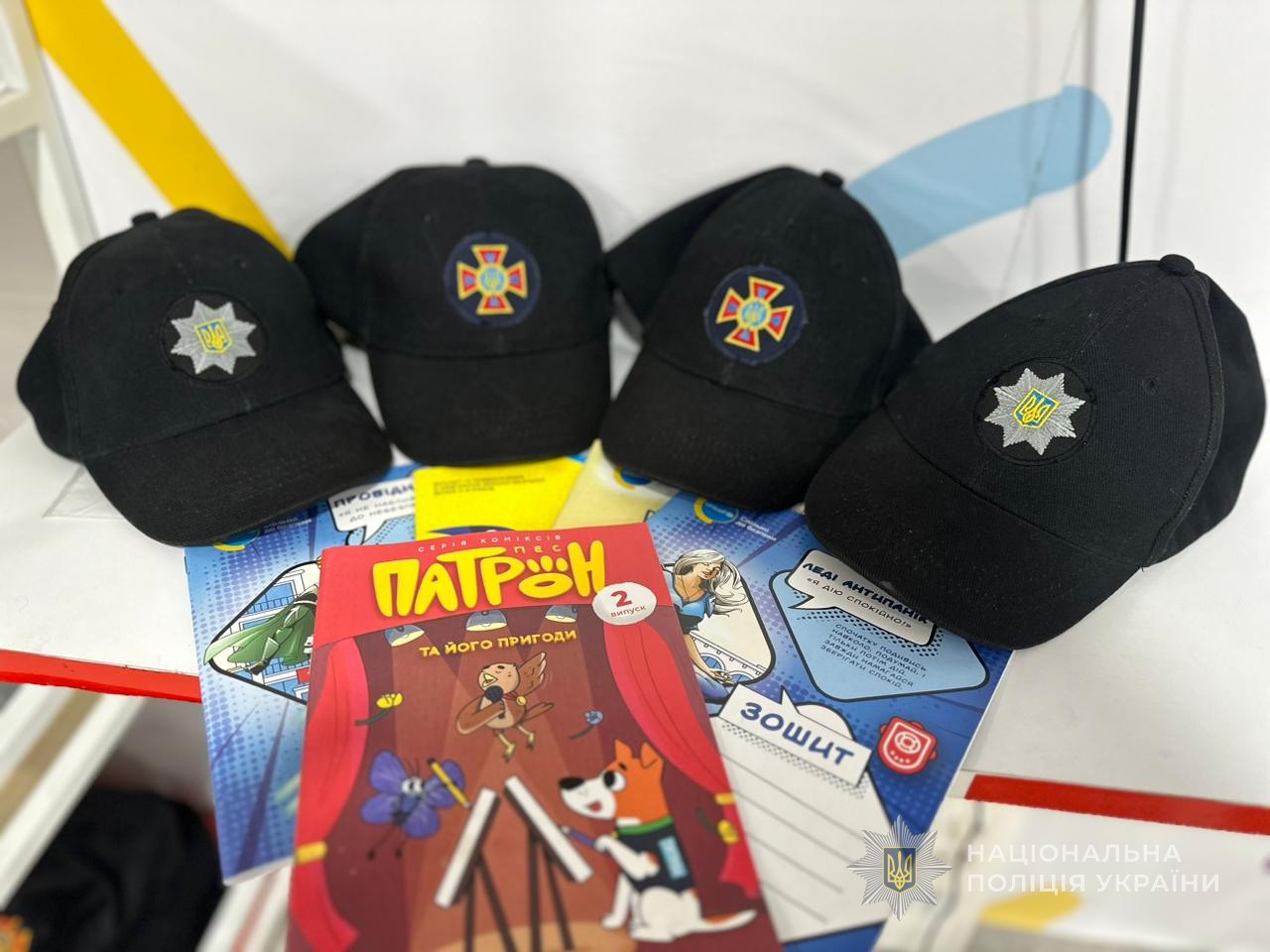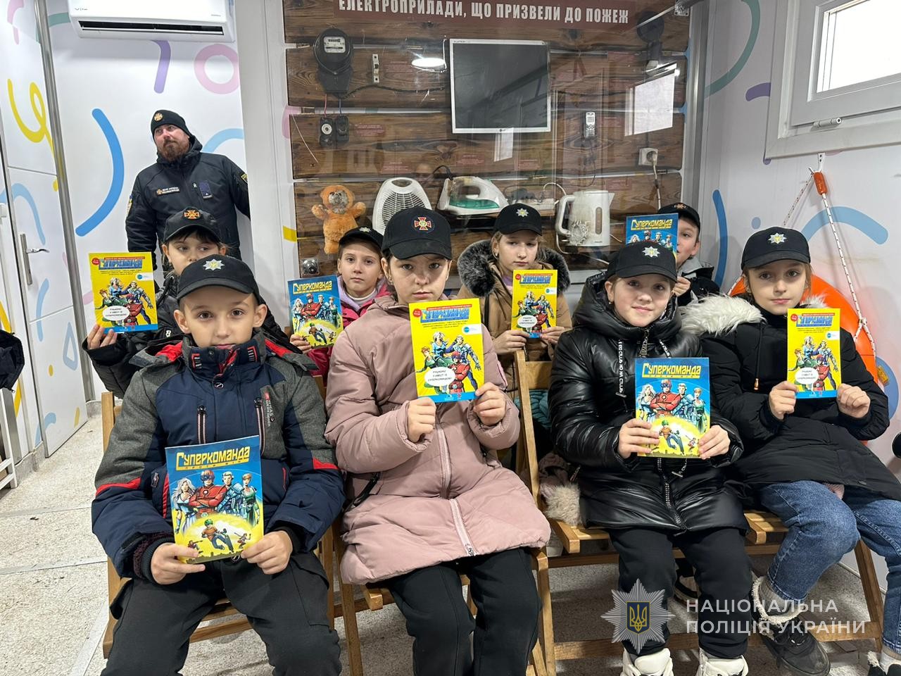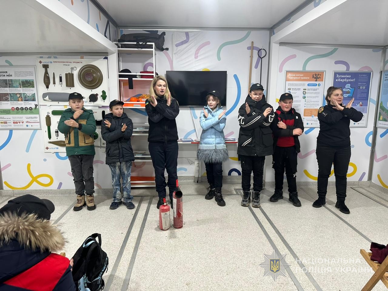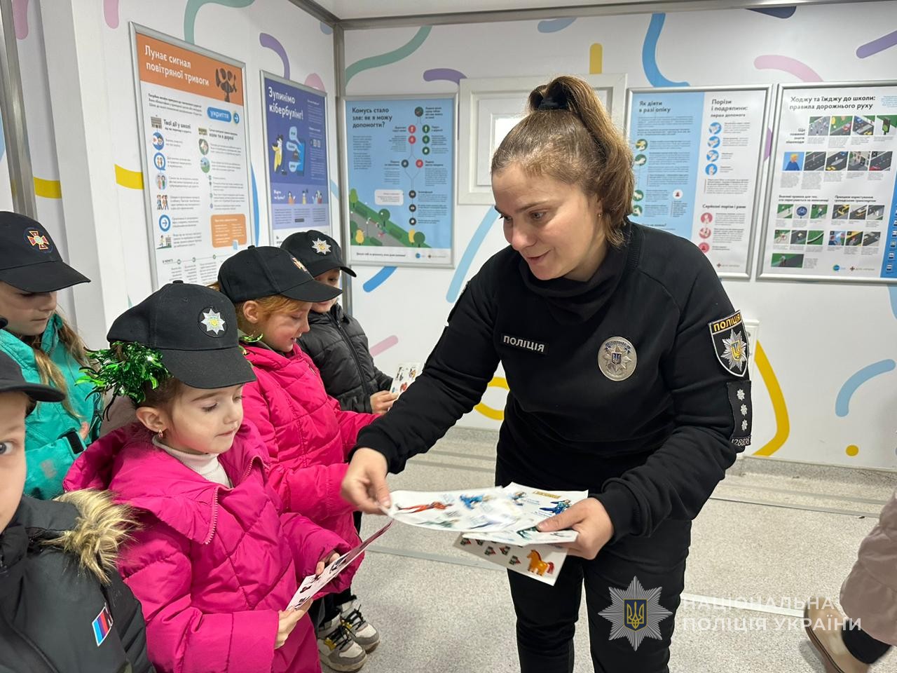 Наприкінці заходу правоохоронці на згадку та закріплення знань подарували юним відвідувачам мобільного класу безпеки тематичні розмальовки, дозволили малечі приміряти головні убори поліцейських та рятувальників і зробили пам’ятні фото.