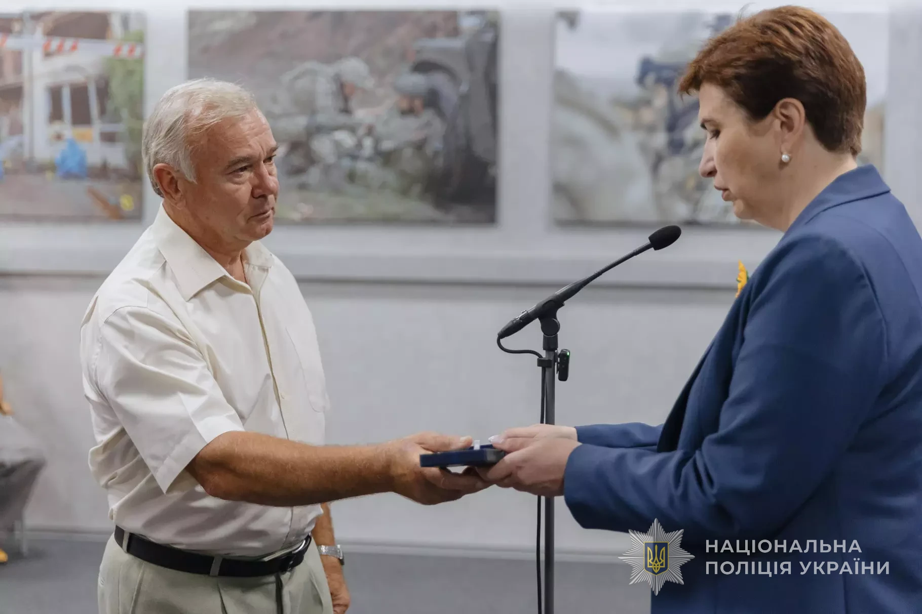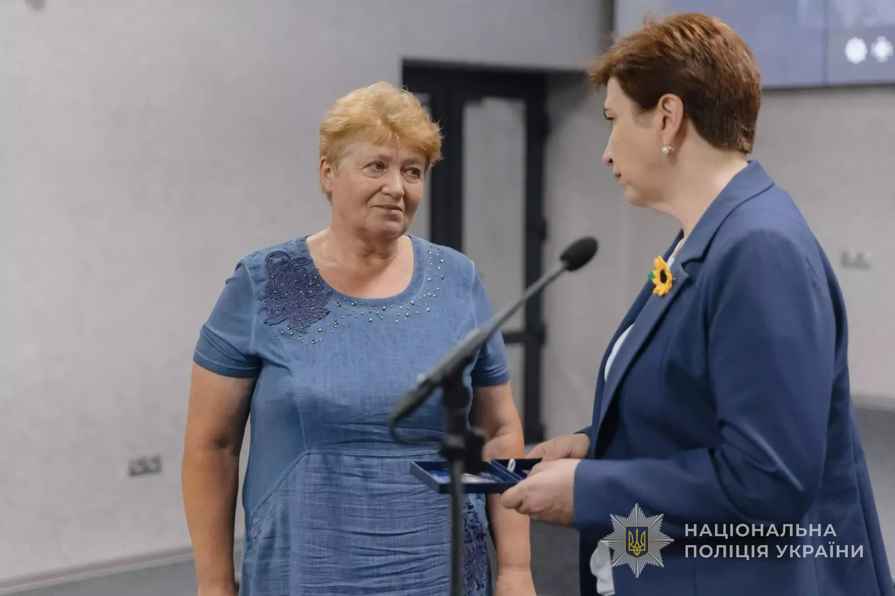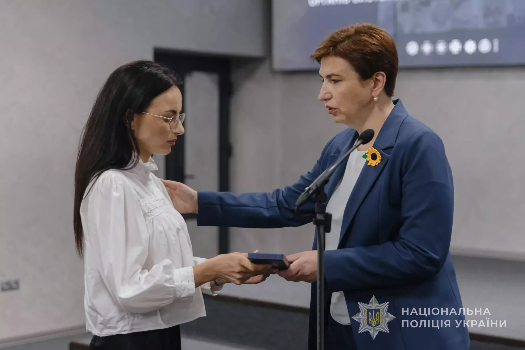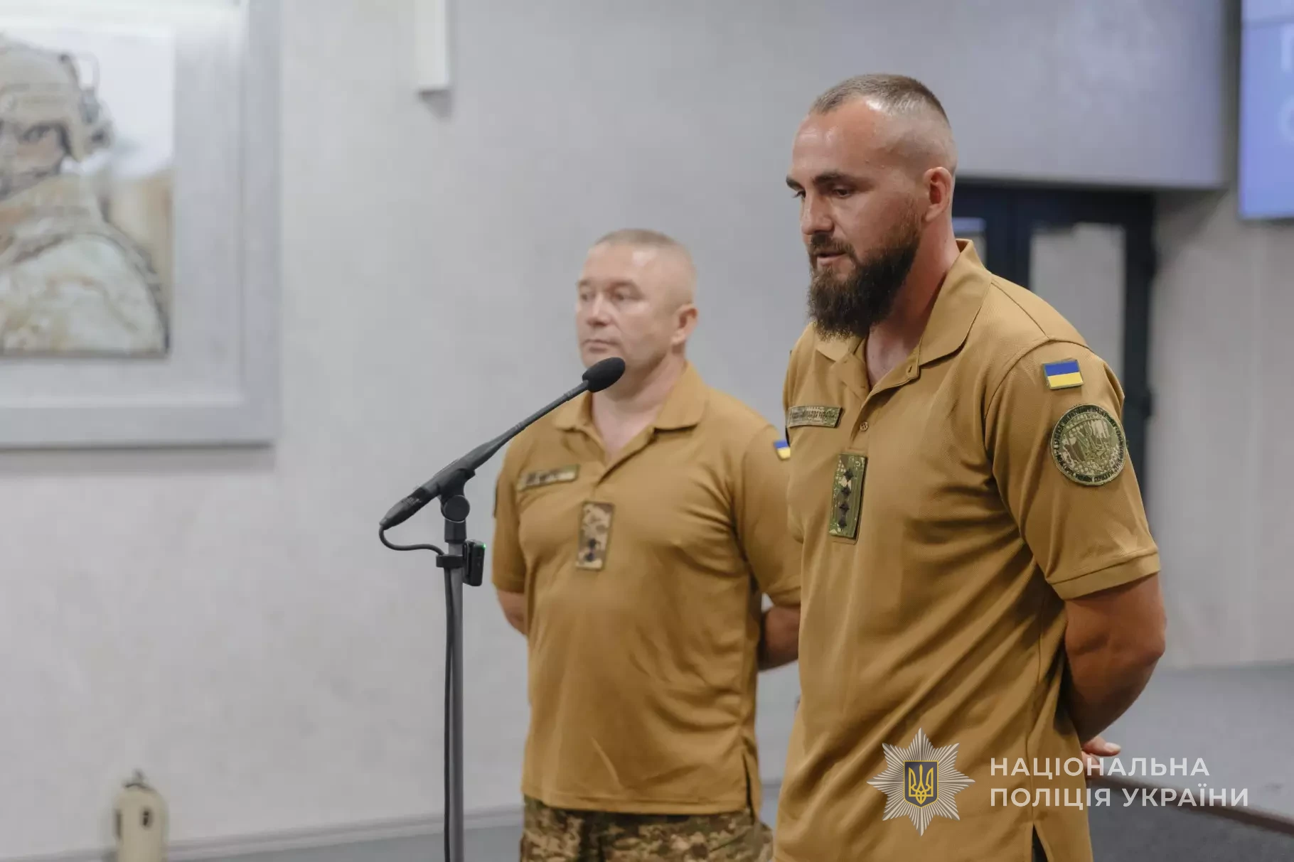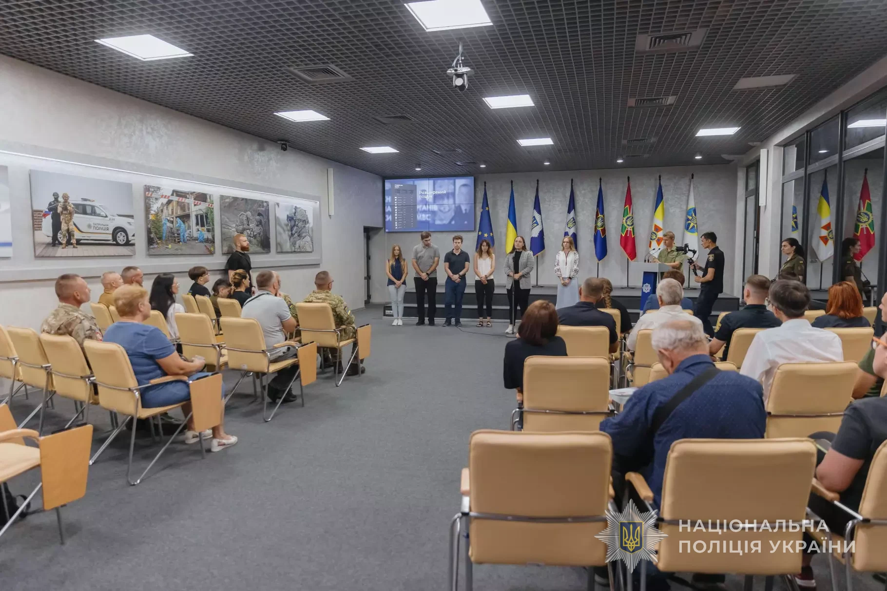 Присутні побачили сюжет і про Героя Богдана Бондарчука – спецпризначенця поліції Чернігівщини, який загинув під час оборони Бахмута. QR-код з посиланням на «Книгу пам’яті органів системи МВС» отримала мама полеглого бійця – Світлана Бондарчук.