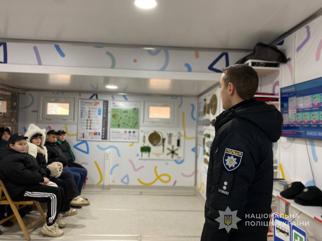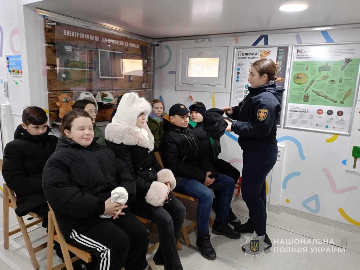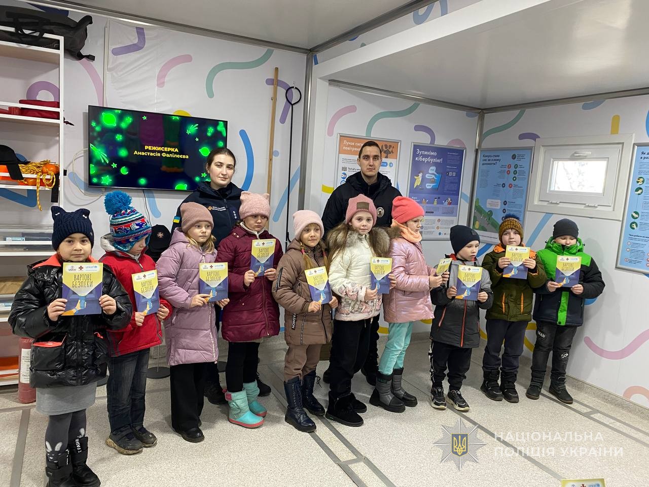 Багато уваги правоохоронці приділили мінній безпеці. Діти подивились тематичний відеоролик, ознайомилися з видами вибухонебезпечних предметів, як вони можуть бути замасковані та що робити у разі їх виявлення. Малеча засвоїла три важливі правила: «НЕ ПІДХОДЬ! НЕ ЧІПАЙ! ТЕЛЕФОНУЙ НА СПЕЦЛІНІЮ 101 АБО 102!».