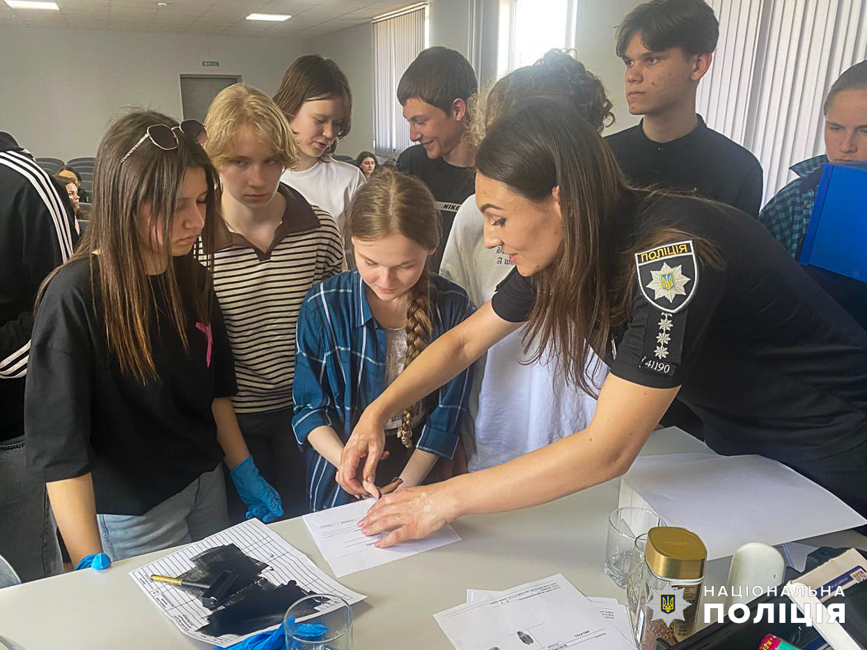 Поліцейська розповіла школярам про особливості своєї роботи на місці вчинення злочину, показала вміст криміналістичних валіз, у яких є все для фіксації, збору та вилучення речових доказів, від порошків для проявлення слідової інформації до дрону для ведення зйомок на великій території. Навела один із яскравих прикладів важливості криміналістики, коли злочинець не знайдений або не визнає своєї вини. Так, нещодавно завдяки виявленим криміналісткою речовим доказам на місці спричинення ножових поранень одному чоловіку слідчі врешті довели причетність до злочину співмешканки потерпілого і висунули їй обвинувачення.