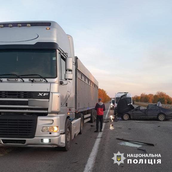 Унаслідок ДТП пасажир «Opel» загинув на місці. Водія легковика з тілесними ушкодженнями госпіталізували до лікарні. Кермач вантажівки не постраждав.