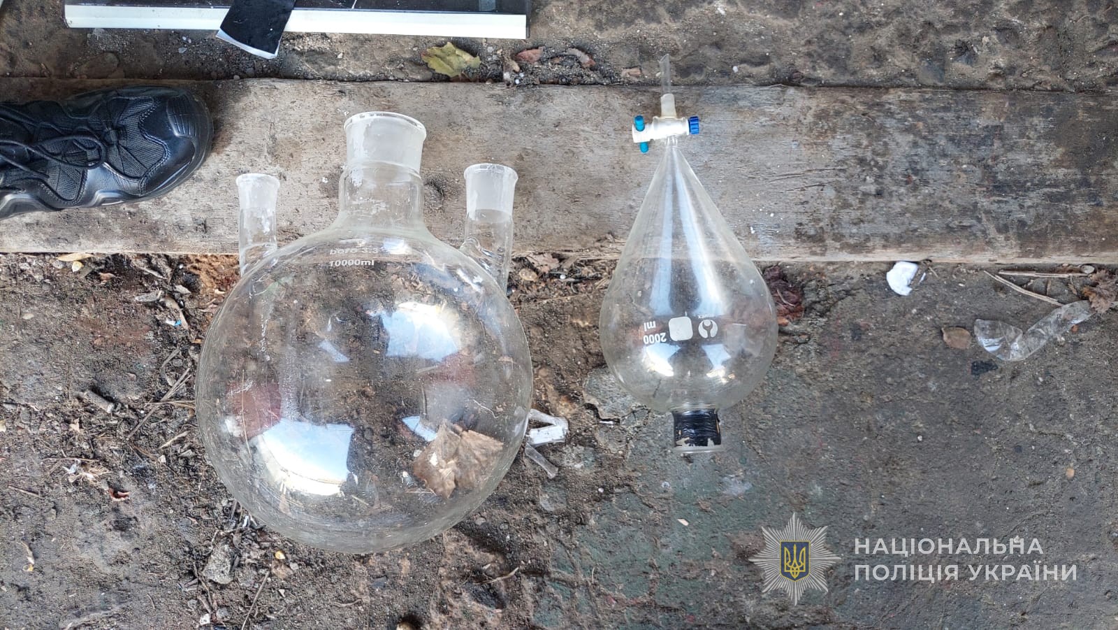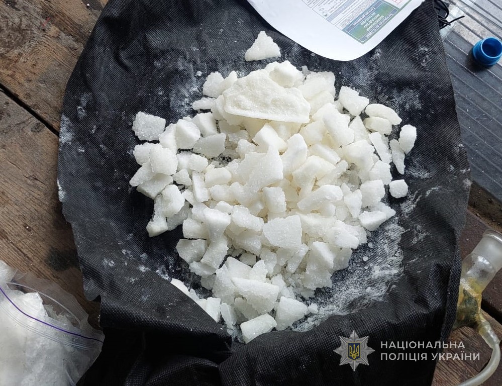 Під час проведеного санкціонованого обшуку за місцем мешкання чоловіка поліцейські вилучили наркотичний засіб метадон, обіг якого обмежено, вагою понад 1,4 кг, каністри з прекурсорами, зокрема понад 24 л соляної кислоти та 4,7 л ацетону, майже 40 грамів канабісу – особливо небезпечного наркотичного засобу обіг якого заборонено, а також лабораторне обладнання, серед якого скляні колби із залишками наркотичних засобів, і фасувальний матеріал.