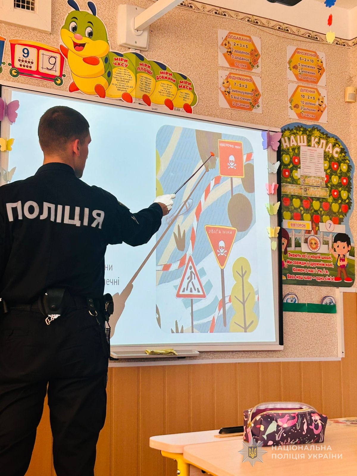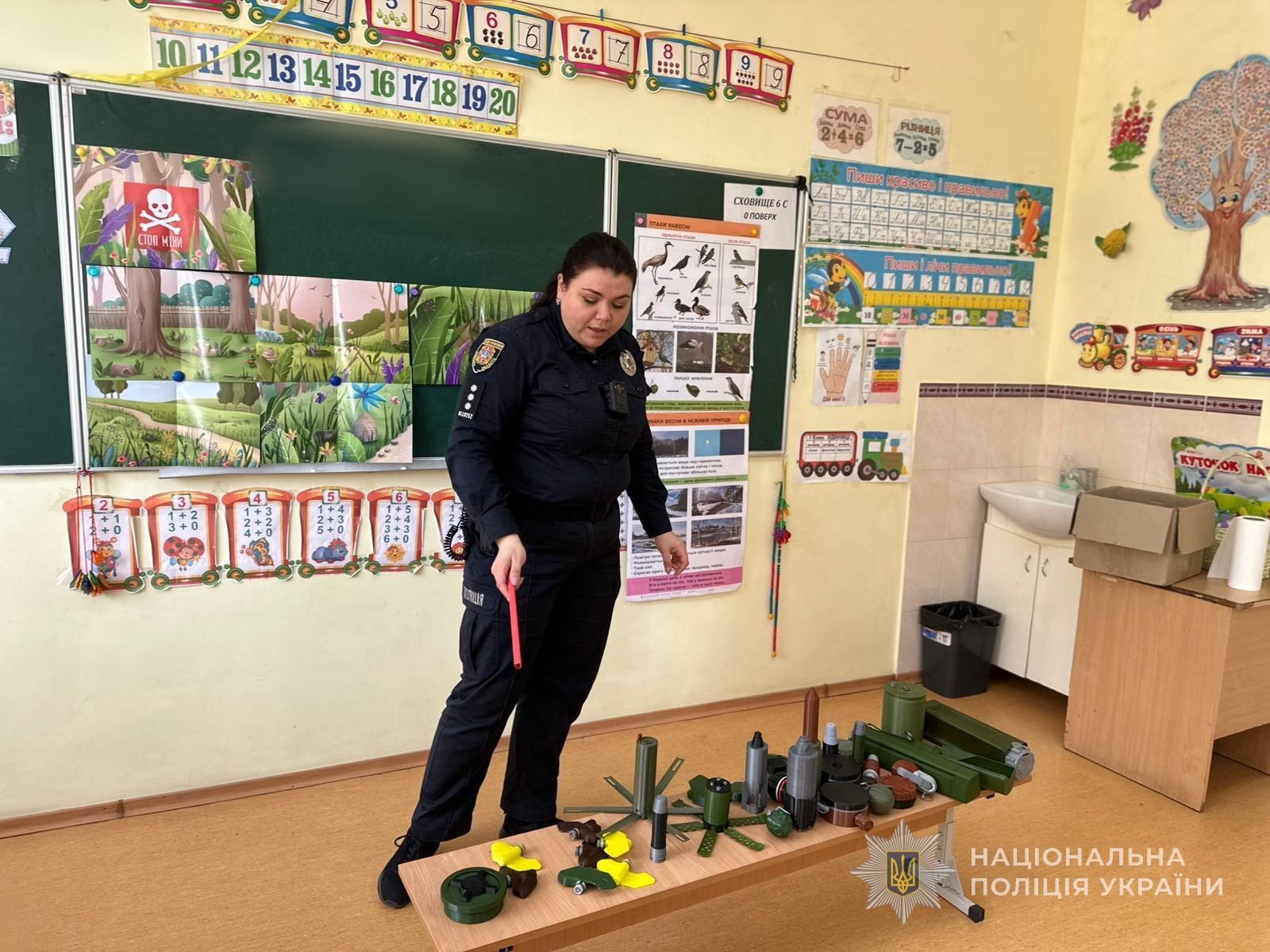 Особливу увагу приділили правилам мінної безпеки, які в умовах сьогодення є вкрай актуальними. Дітям розповіли, що вибухонебезпечні предмети можуть виглядати як звичайні речі, до прикладу, коробки, іграшки чи металеві вироби, та продемонстрували макети. Усім пояснили, що не можна брати покинуті предмети, навіть якщо вони здаються безпечними, наближатися до явно небезпечних предметів, зокрема уламків ракет та безпілотних літальних апаратів, розбирати чи переміщувати їх, бо вони можуть становити смертельну загрозу. Від знахідки слід відійти якомога далі, попередити інших і зателефонувати на спецлінії 101, 102 або 112.
