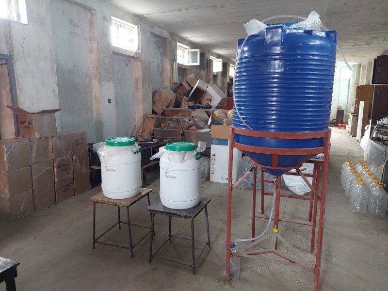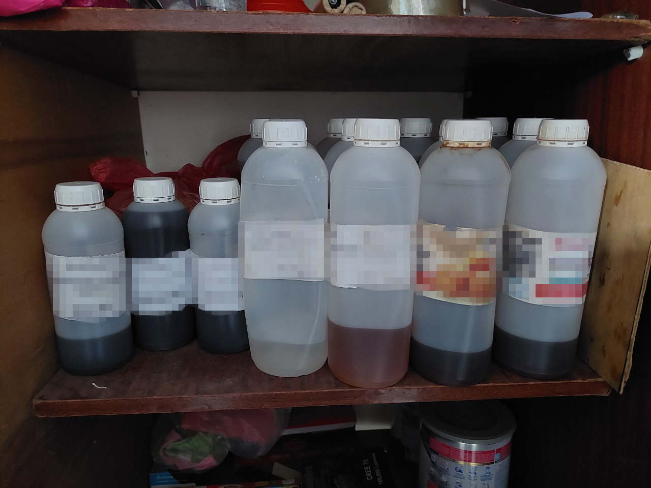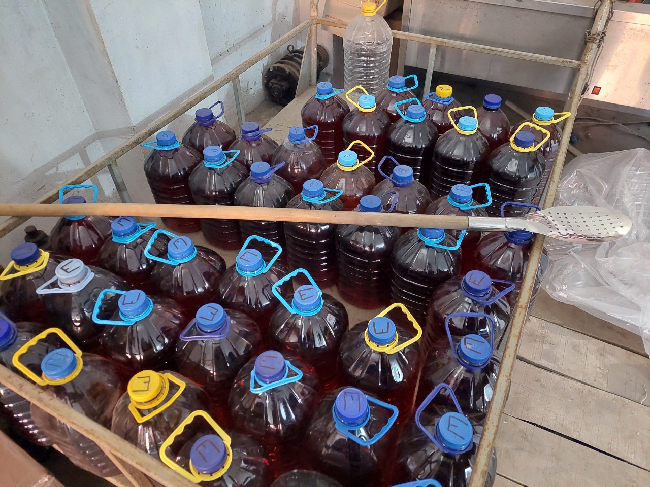 З домоволодіння громадянина під час невідкладного обшуку загалом вилучили 1985 літрів схожої на горілчану та коньячну рідини, розлитої в пластикову тару різного об’єму, та 6326 пачок сигарет різного найменування, без марок акцизного збору. Також правоохоронці виявили барвники, обладнання та ємності для виготовлення алкогольних напоїв кустарним методом.