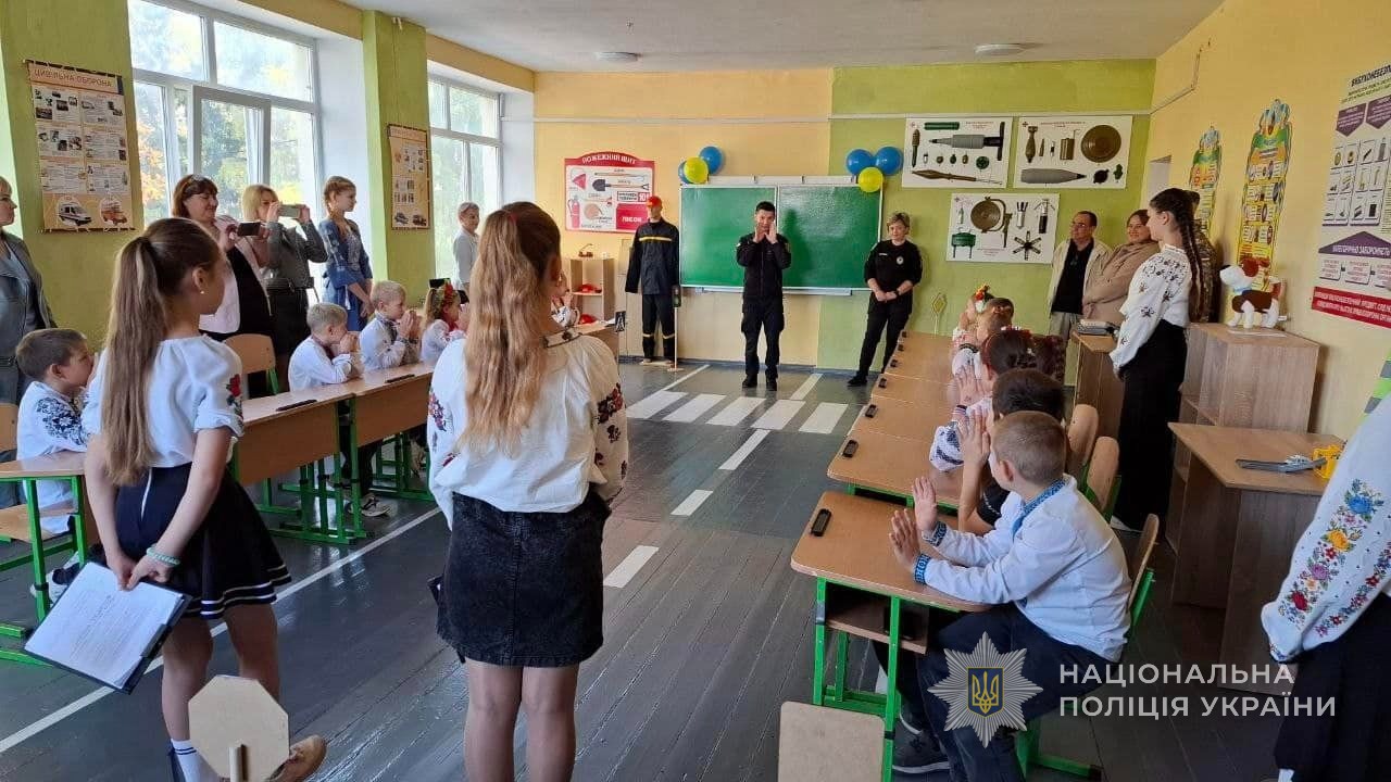 Поліцейські разом із колегами з Державної служби України з надзвичайних ситуацій і командами юних рятувальників нагадали ліцеїстам, як поводитись при виявленні вибухонебезпечних предметів і при оголошенні сигналу «Повітряна тривога», закликали не покидати приміщення укриття до сигналу «Відбій».