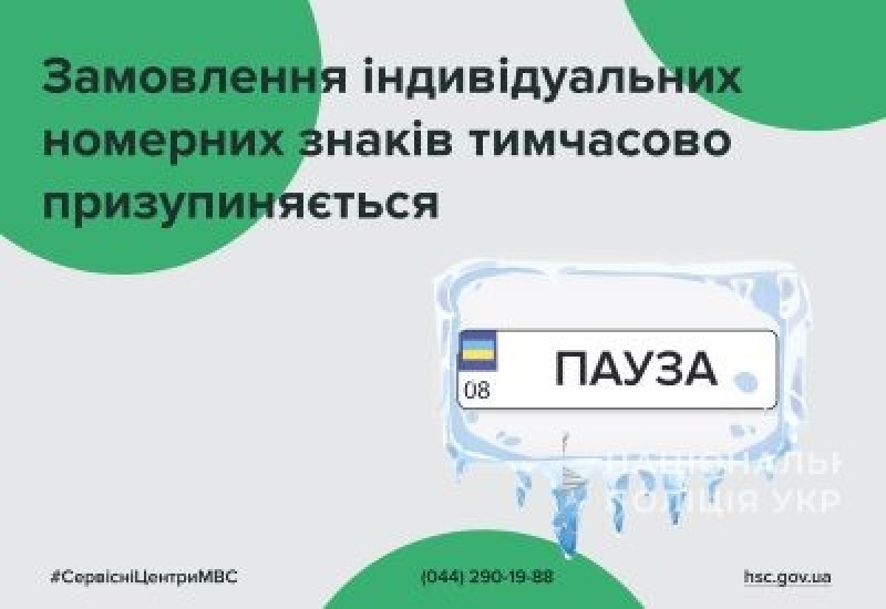 Надання послуги із замовлення індивідуальних номерних знаків тимчасово призупинено