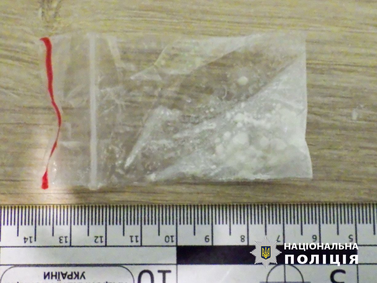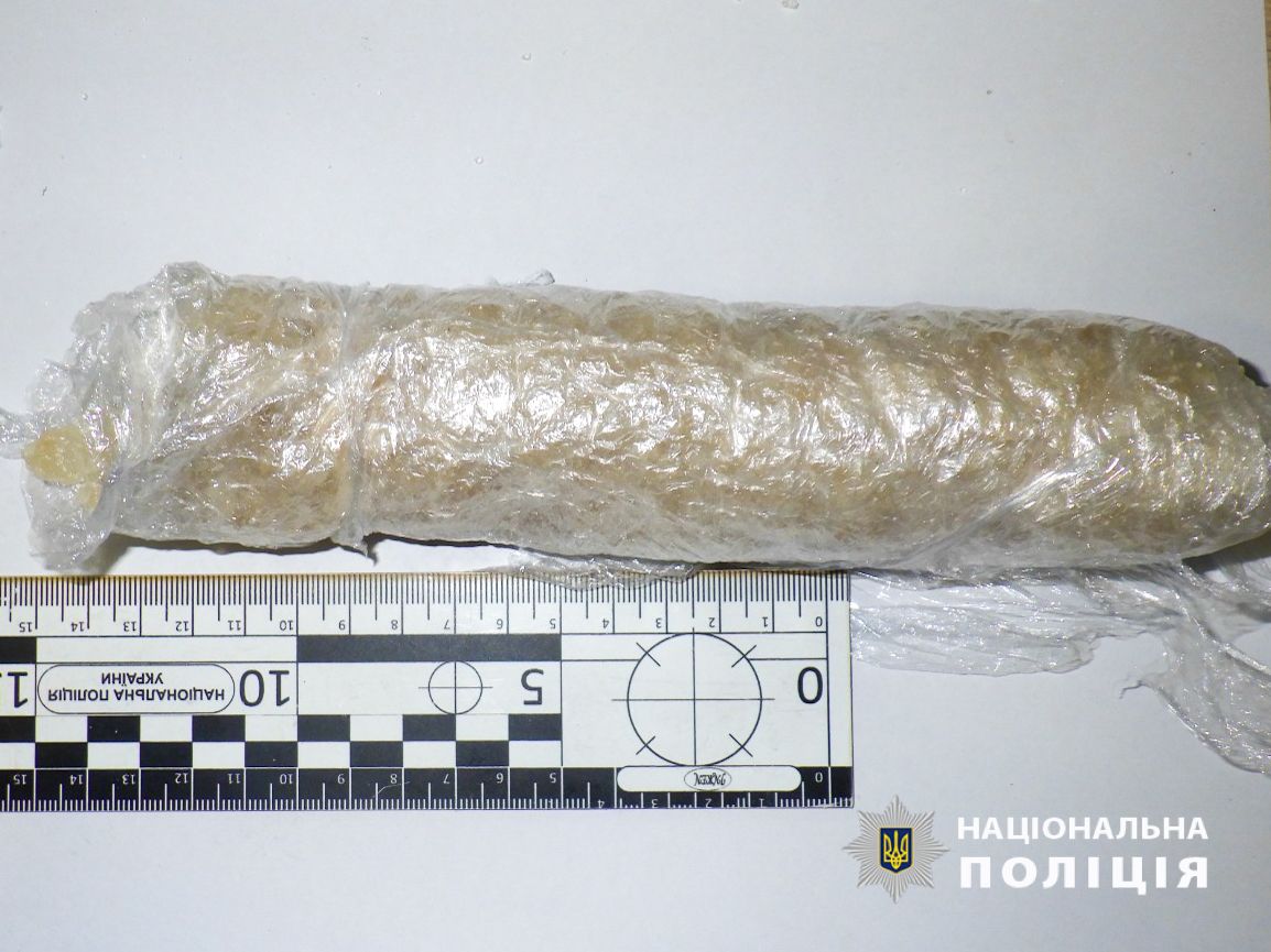 Викликані на місце події поліцейські перевірили вміст згортків за допомогою експрес-тесту – результат показав його належність до психотропної речовини.