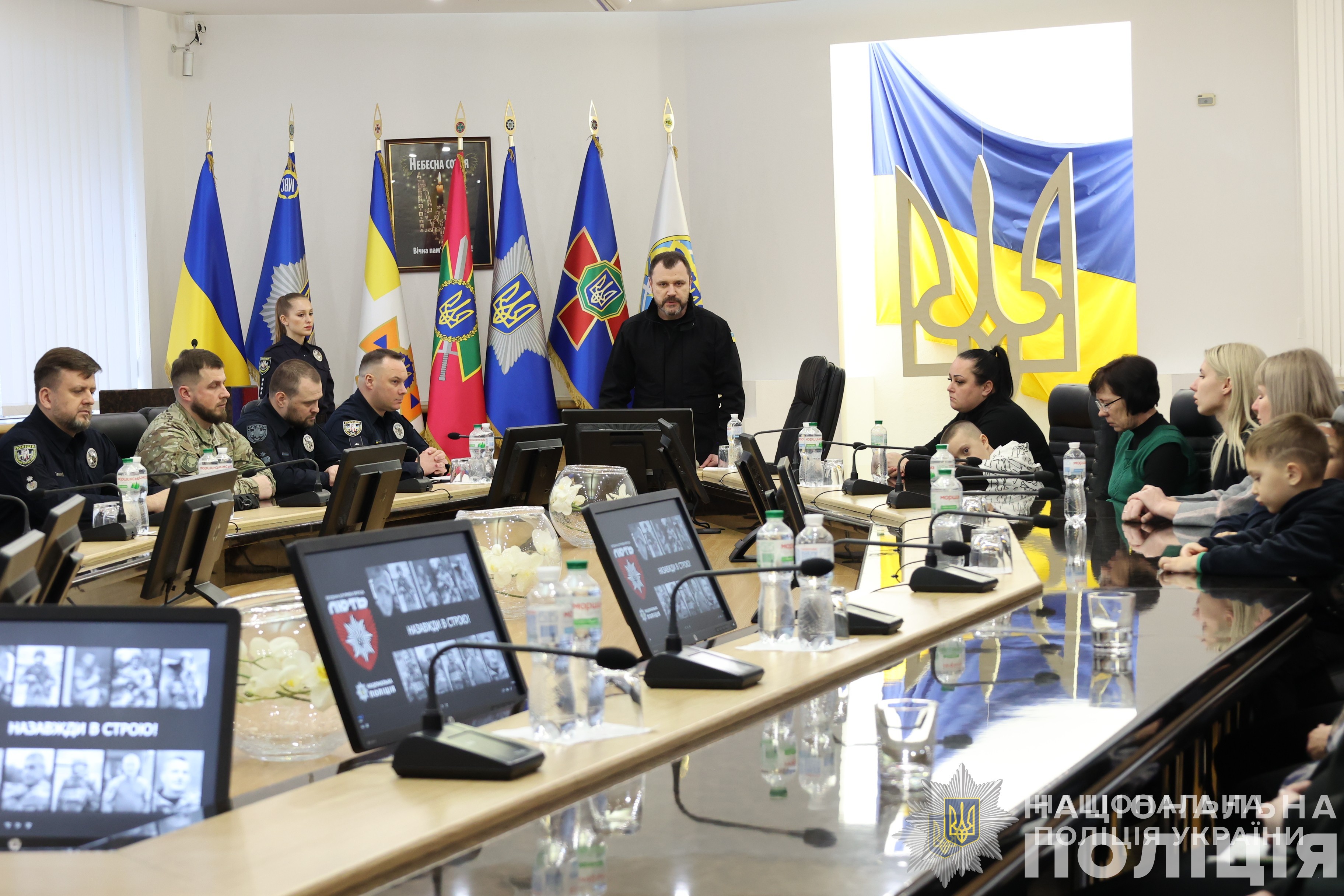 Вчора, 23 січня, Міністр внутрішніх справ України Ігор Клименко та Голова Національної поліції Іван Вигівський передали родинам полеглих воїнів нагороди та погони.