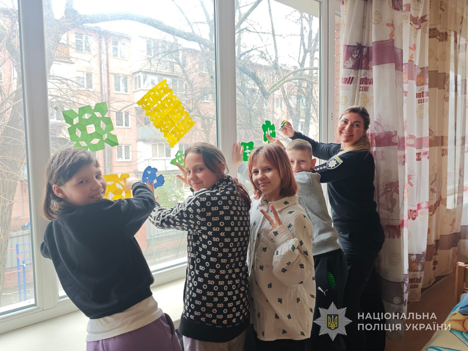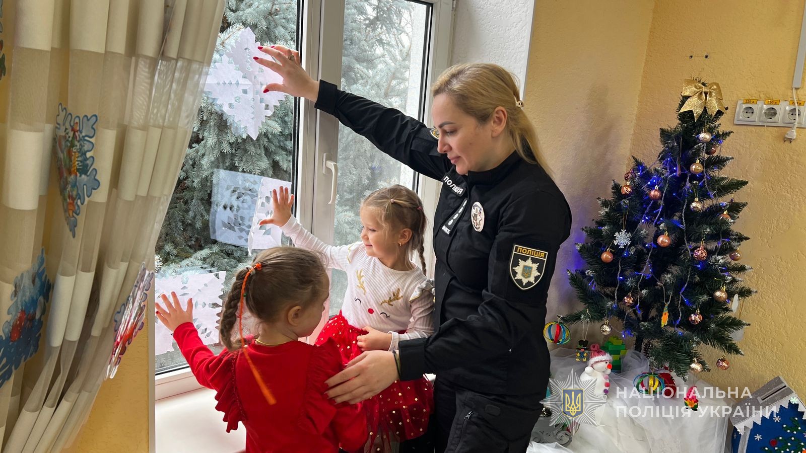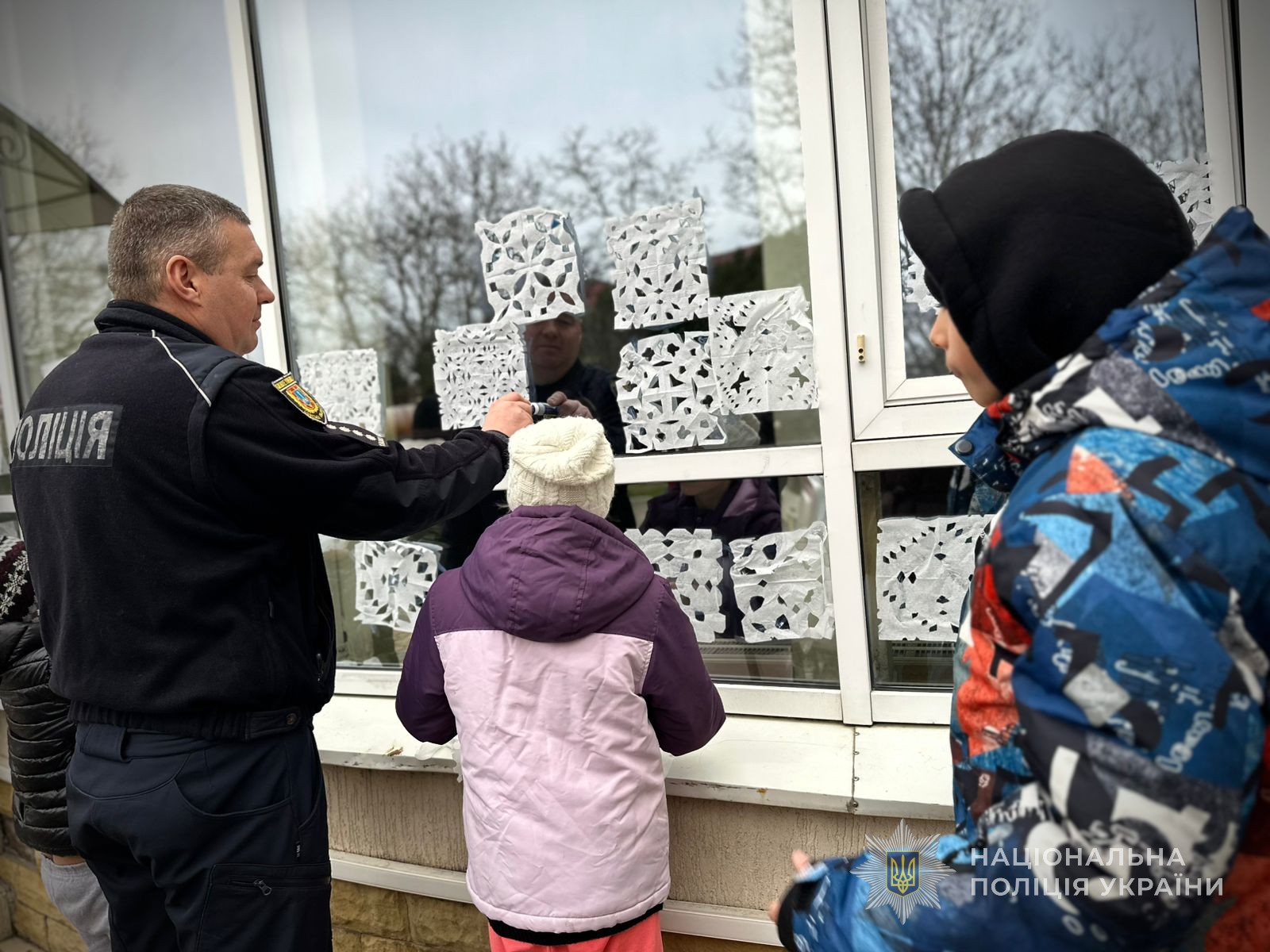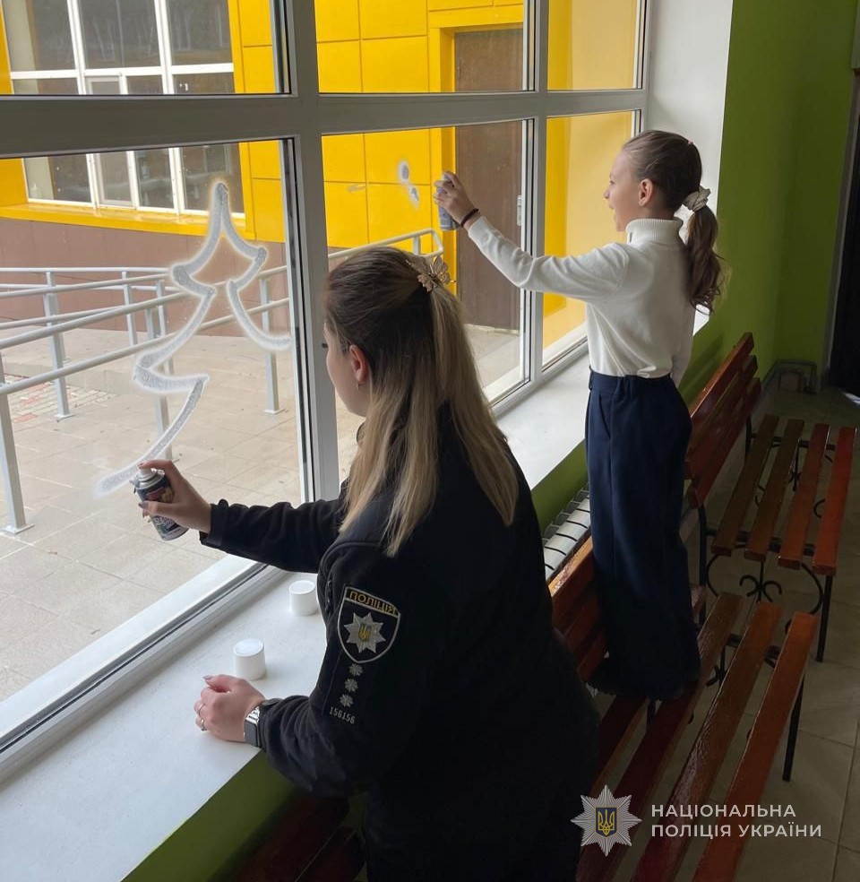 У межах всеукраїнської акції «Різдвяні вікна України» в навчальних шкільних та дошкільних закладах правоохоронці разом із малечею перетворювали дитячий простір на зимову казку.