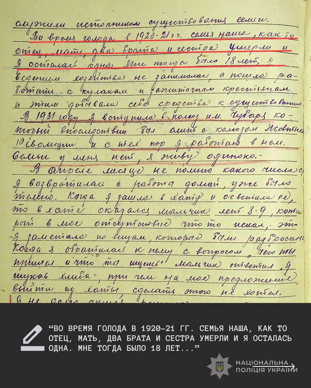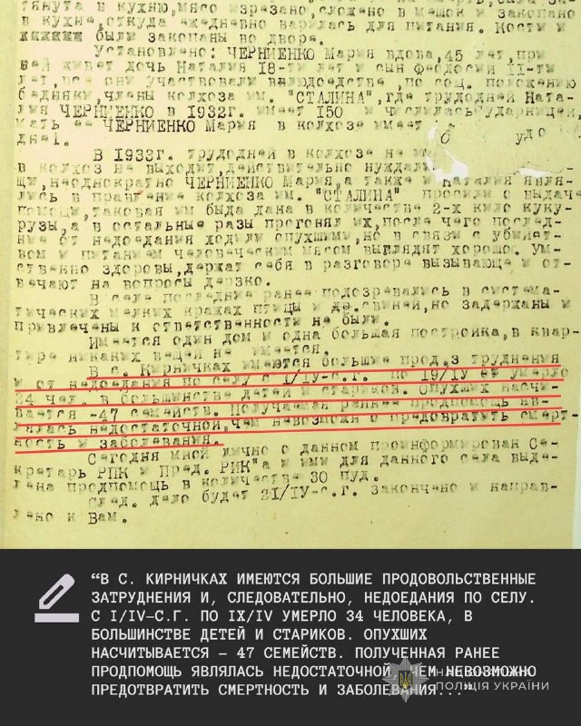 Це підтверджують численні свідчення людей, які збереглися в архівах. Днями ми передали Музею Голодомору оцифровані копії понад 1000 кримінальних справ періоду геноциду українців. Деякі цитати зі свідчень - на фото.