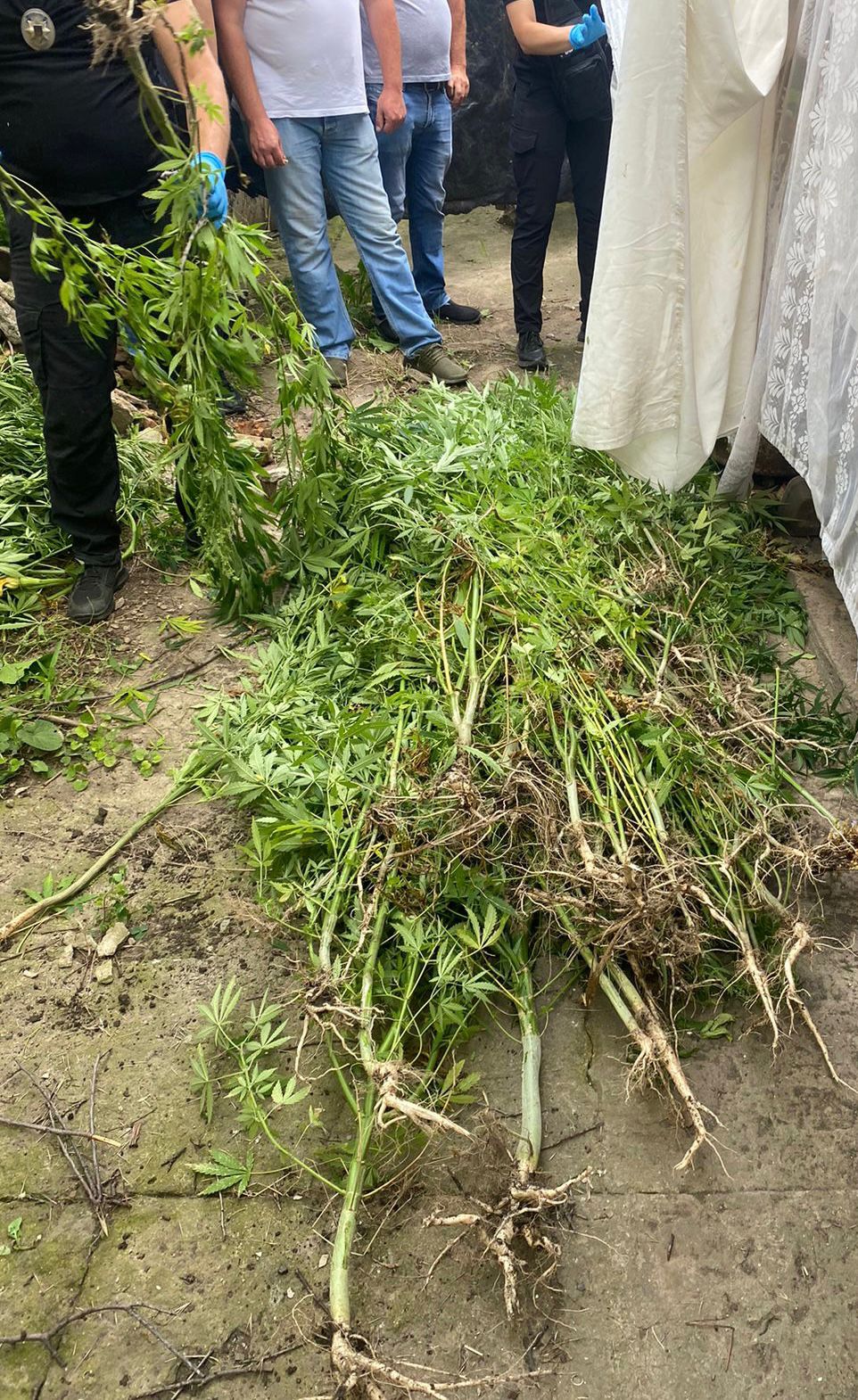 В ході проведення санкціонованого обшуку на присадибній ділянці правоохоронці виявили 177 кущів конопель, а в будинку – висушені гілки, схожі на коноплі, та загалом 16 пакетиків і згортків з речовиною рослинного походження зеленого кольору у висушеному та подрібненому стані, схожою на канабіс.