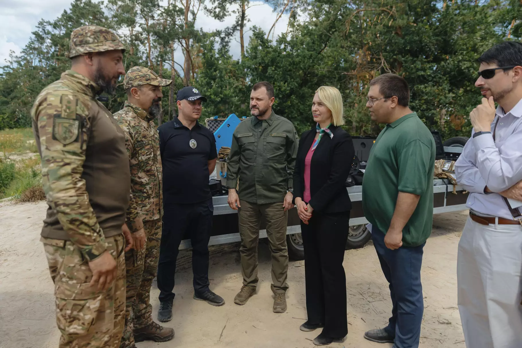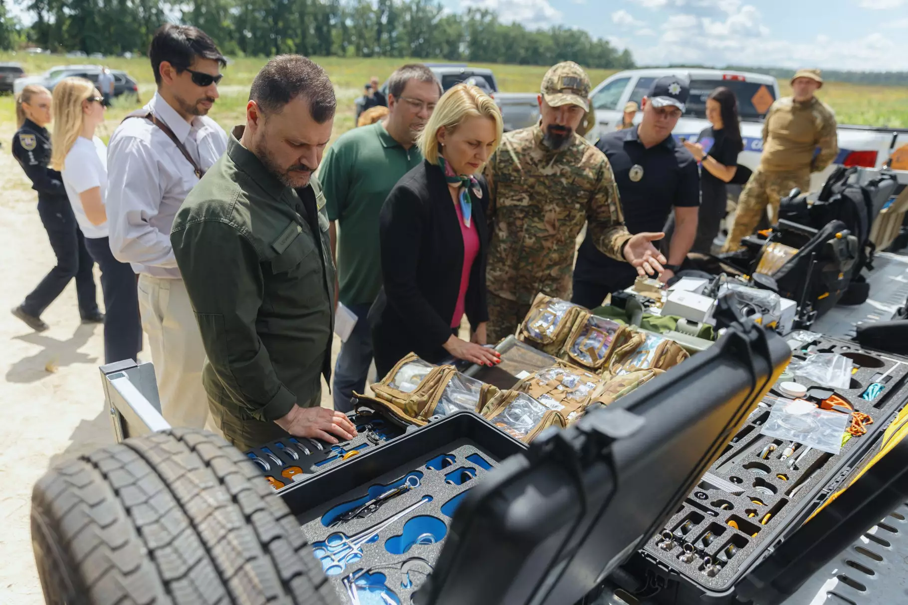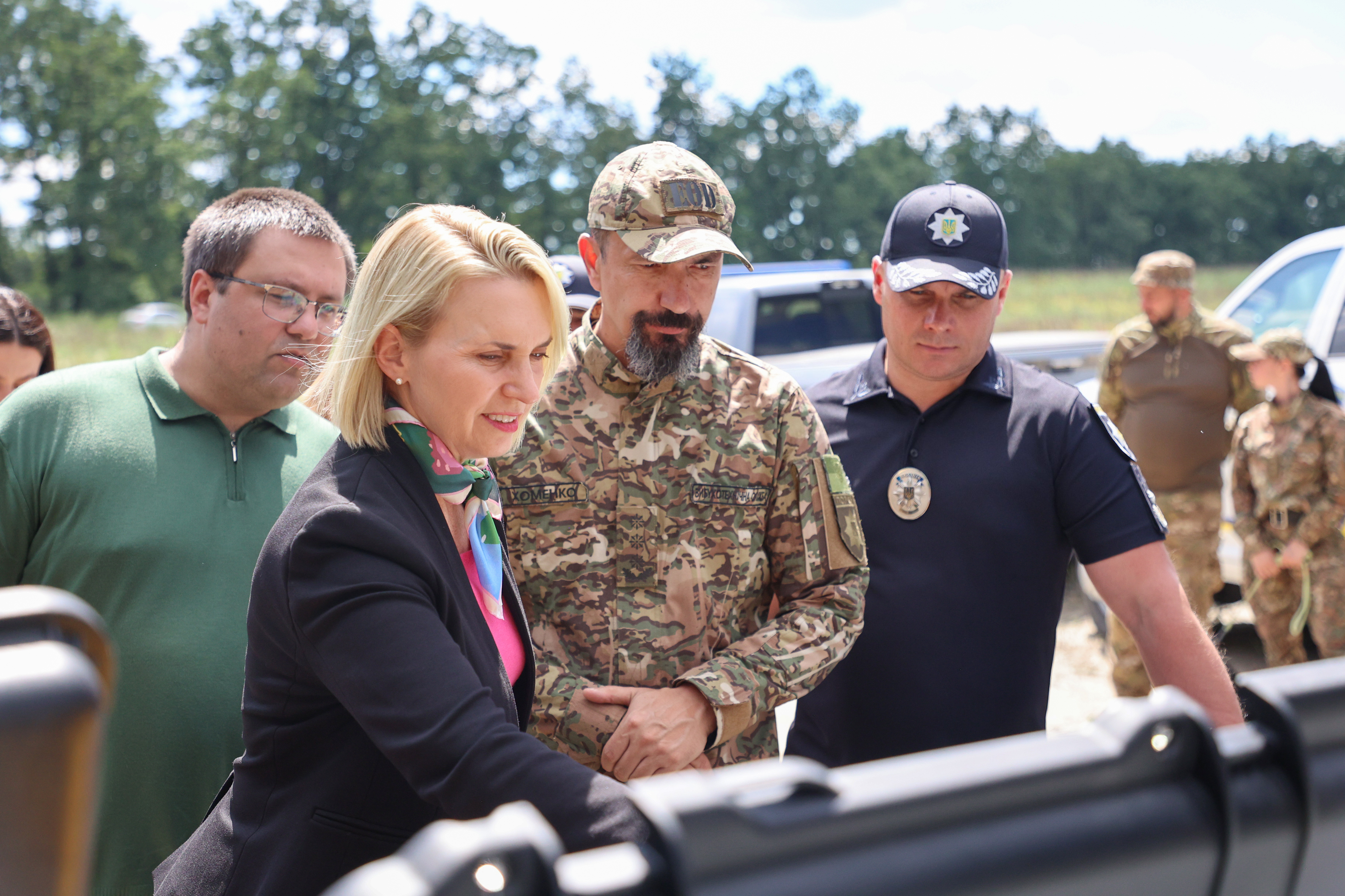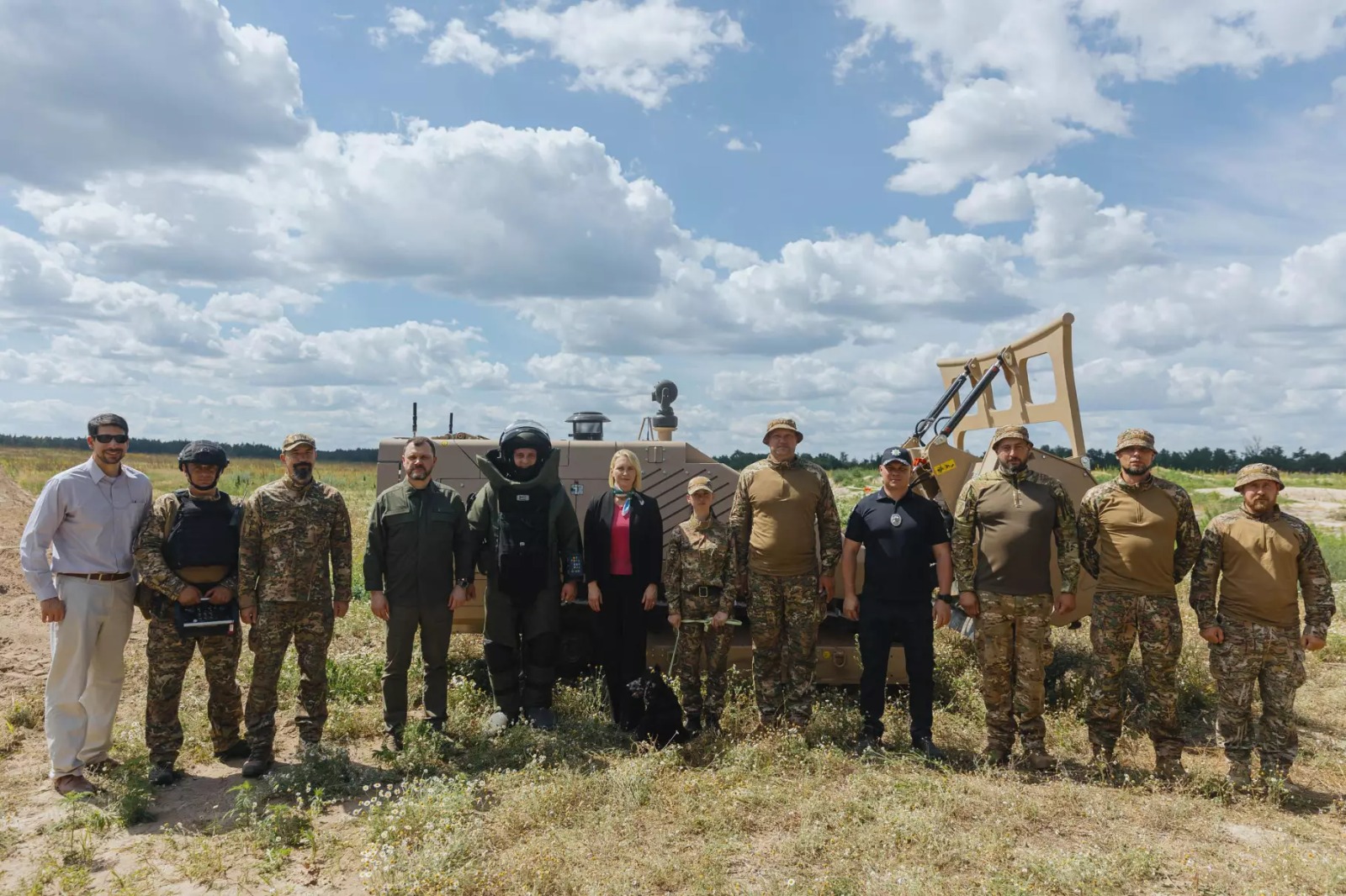 Вчора, 25 червня, на одному з полігонів Київщини Міністр внутрішніх справ України Ігор Клименко разом з Надзвичайним і Повноважним Послом США в Україні Бріджит Брінк та Головою Національної поліції України Іваном Вигівським ознайомилися із роботою машини механізованого розмінування GCS-200, переданої підрозділам системи МВС у межах матеріальної технічної допомоги від Уряду США.