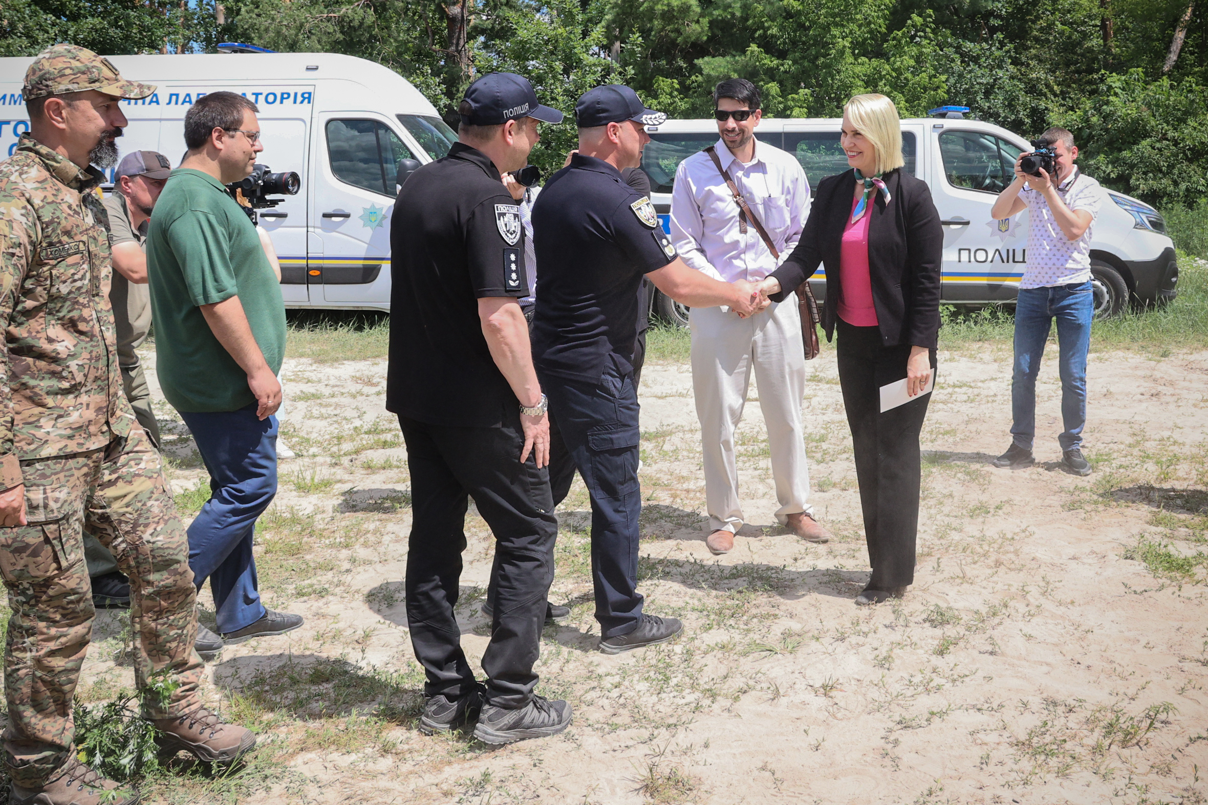 Голова Національної поліції України Іван Вигівський подякував пані Послу за важливий пакет допомоги, який суттєво допоможе українським вибухотехнікам, які щодня ризикують життями, у безпечному розмінуванні наших територій.