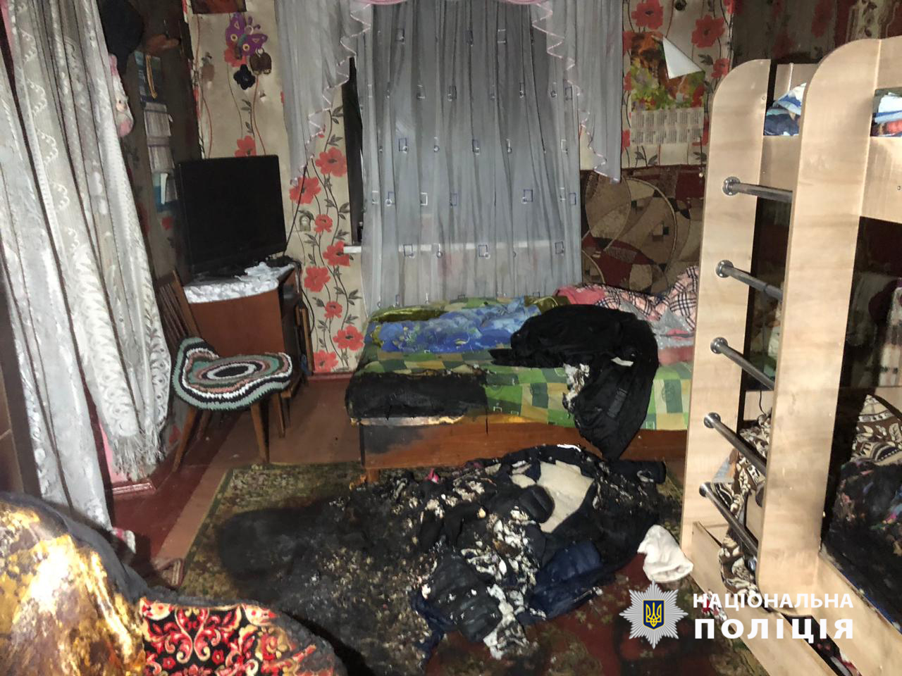 Слідчо-оперативна група територіального підрозділу поліції, яка прибула за вказаною заявниками адресою, встановила, що між подружжям сталася побутова сварка, під час якої нетверезий чоловік, облив дружину легкозаймистою рідиною та підпалив. На жінці зайнявся одяг. Вона схопила з ліжка покривало, вибігла на вулицю, обгорнулась ним і у такий спосіб загасила полум’я.