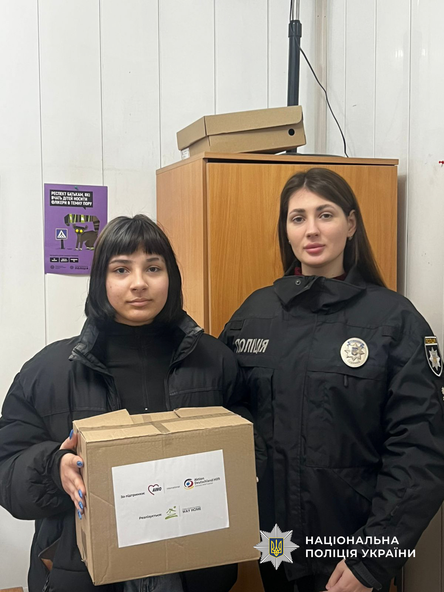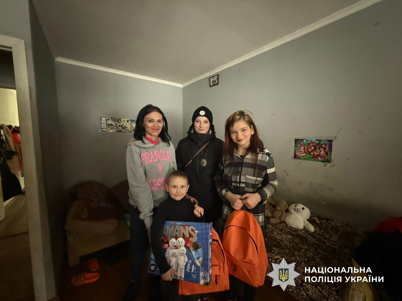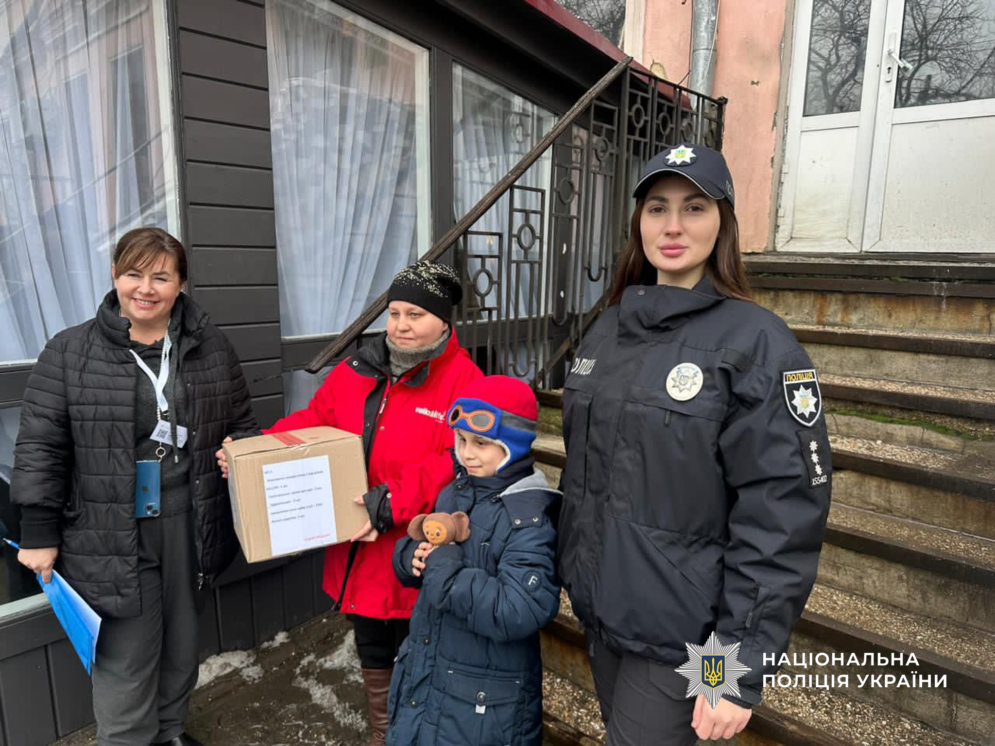 Співробітники поліції, служби у справах дітей Одеської міської ради, Одеської міської військової адміністрації та представники благодійних організацій передали родинам обігрівачі, портативні зарядні пристрої, ковдри, іграшки, канцелярське приладдя та інші необхідні речі.