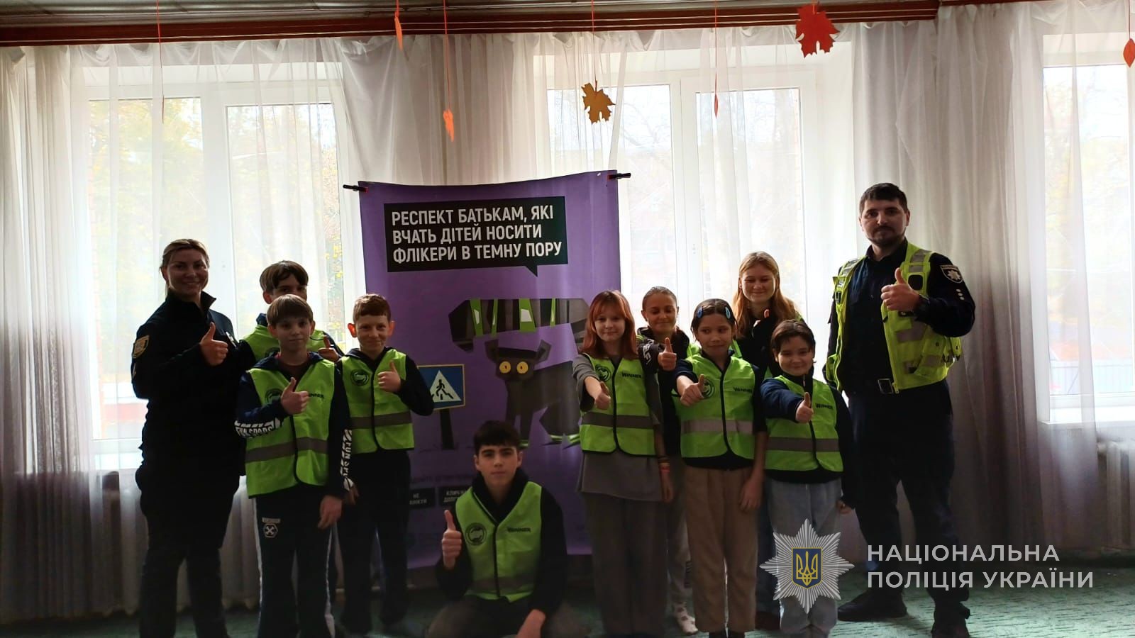 Поліцейські радили діткам вдягати світлий одяг, адже темний робить пішохода майже непомітним у темряві. Також правоохоронці рекомендували прикріплювати до одягу, взуття чи рюкзаків наліпки, значки чи інші світловідбивальні елементи (флікери).