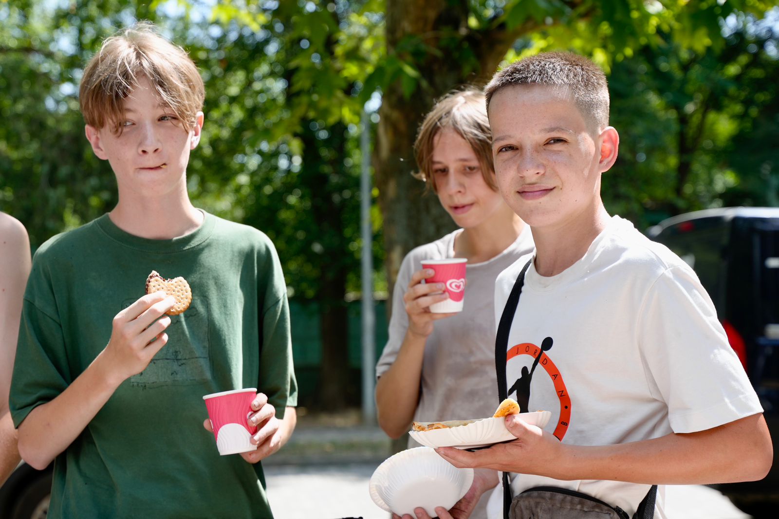 Поліцейські, діти та волонтери підготували різні смаколики, піцу, напої та солодку вату, якою пригощали відвідувачів парку.