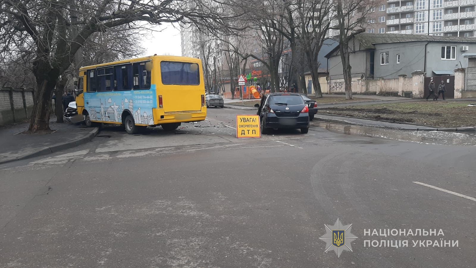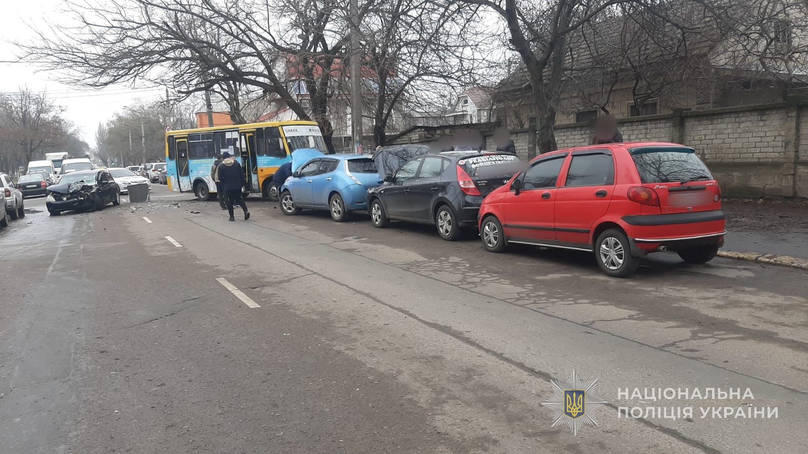 Правоохоронці попередньо встановили, що водій «Nissan», рухаючись з другорядної дороги на головну, не пропустив кермувальника маршрутного автобуса, який мав перевагу в русі, і допустив зіткнення з ним. У свою чергу, в результаті поштовху, водій громадського транспорту в'їхав у припаркований автомобіль, той – ще в один, і так один за одним в автопригоду потрапили загалом ще чотири припарковані легковика.