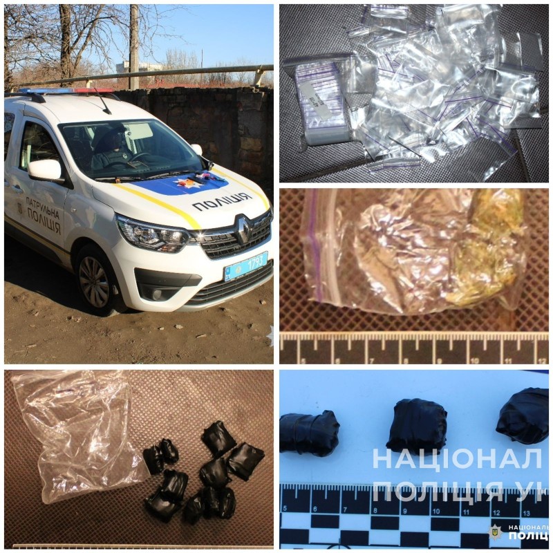 Під час патрулювання поліцейські зупинили містянина у провулку Одеському, куди він прийшов, щоб розкласти по схованках «товар». Викликані на місце події співробітники слідчо-оперативної групи територіального підрозділу поліції вилучили у правопорушника пачку цигарок та три згортки, у яких знаходилась кристалічна речовина білого кольору. Зі слів чоловіка – «солі».