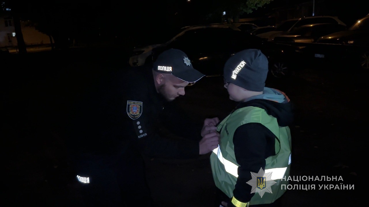 Щоб наочно продемонструвати, як важливо дбати про власну безпеку та користуватися світлоповертальними елементами, ювенальні поліцейські з дітьми створили соціальний ролик «Познач себе в темряві».