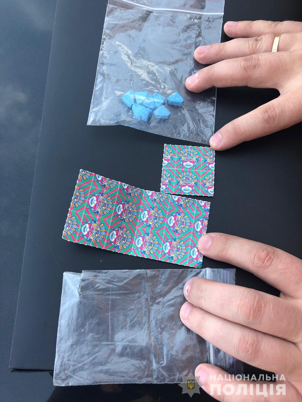 Під час проведення поверхневого огляду у нього виявили понад сімдесят одиниць психотропної речовини «ЛСД» та пігулок «екстазі», які, зі слів чоловіка, він зберігав для власного вживання.
