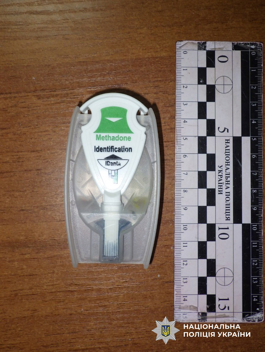 Вміст одного з пакетиків поліцейські перевірили експрес-тестом, який показав наявність в речовині обмеженого в обігу наркотичного засобу – метадону. Усі вилучені речовини скеровано на судову експертизу.