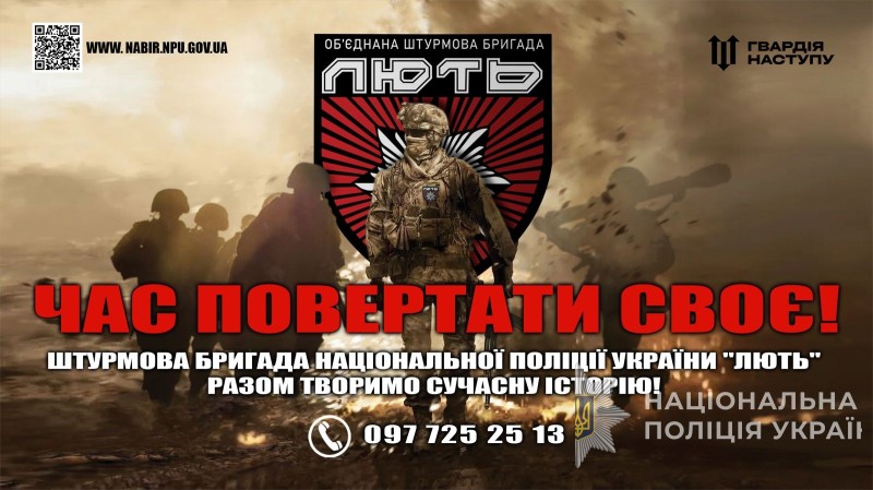 Оголошено конкурс на посади в батальйон патрульної служби поліції особливого призначення для укомплектування бригади "Лють"
