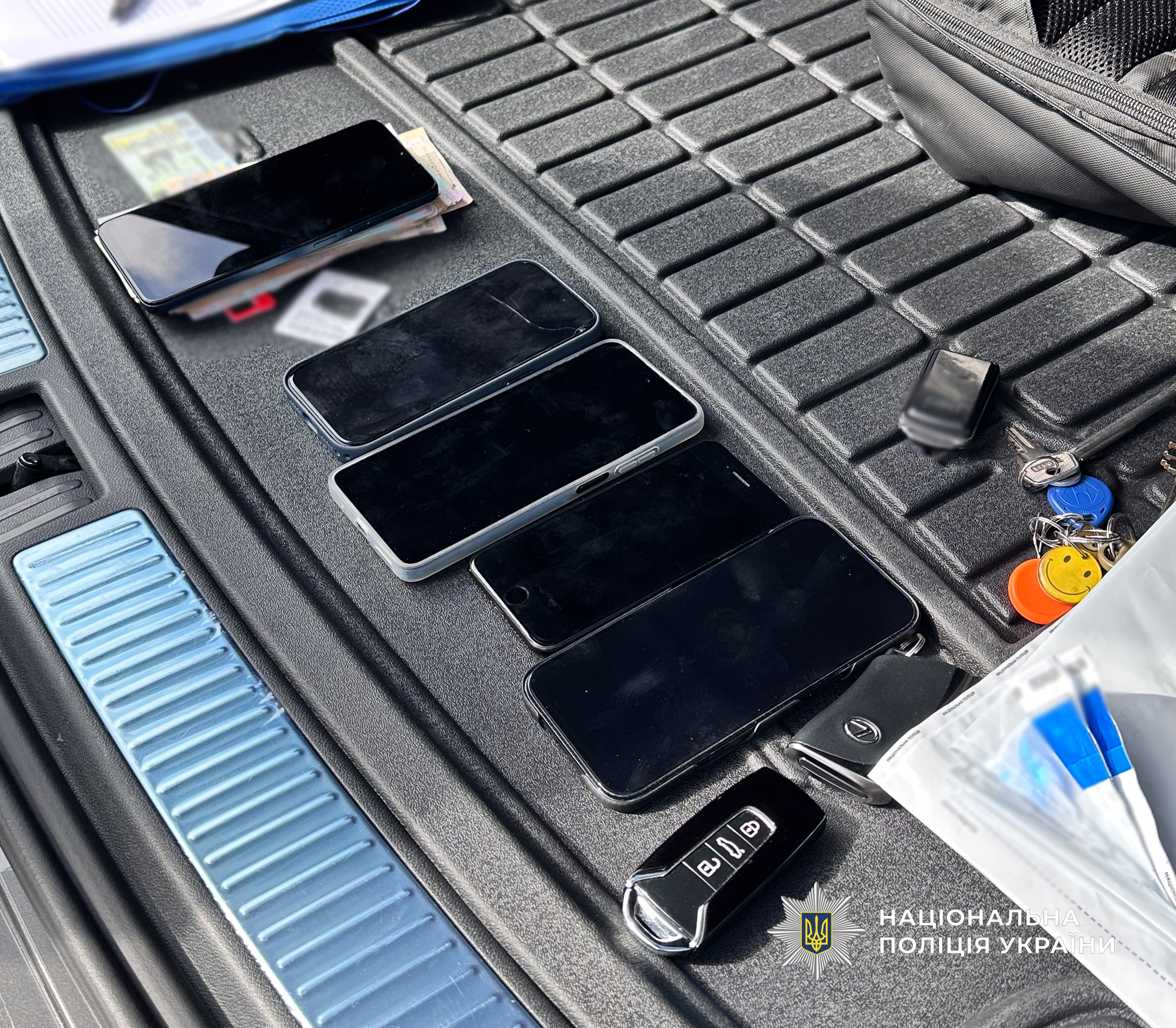 За місцями мешкання фігурантів та в транспортних засобах, якими вони користувалися, проведено низку обшуків, під час яких правоохоронці виявили та вилучили мобільні телефони, SIM-картки операторів мобільного зв’язку, банківські картки, гроші.