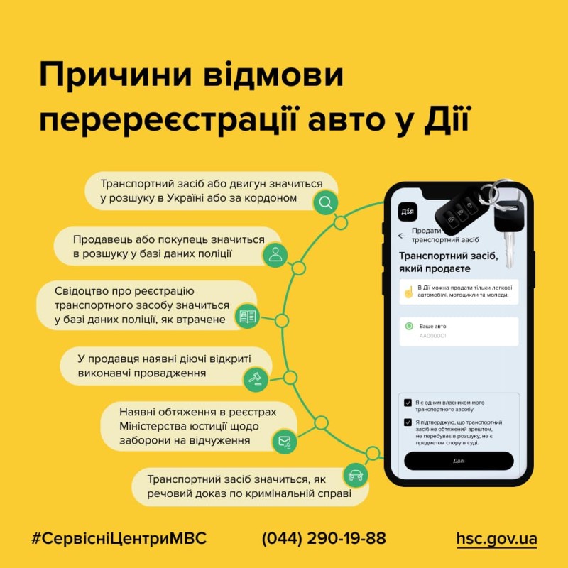 Після усунення причини відмови, можете перереєстровувати транспортний засіб онлайн або в сервісному центрі МВС.