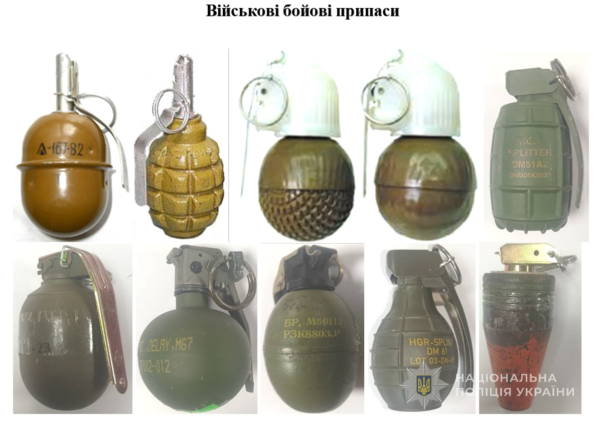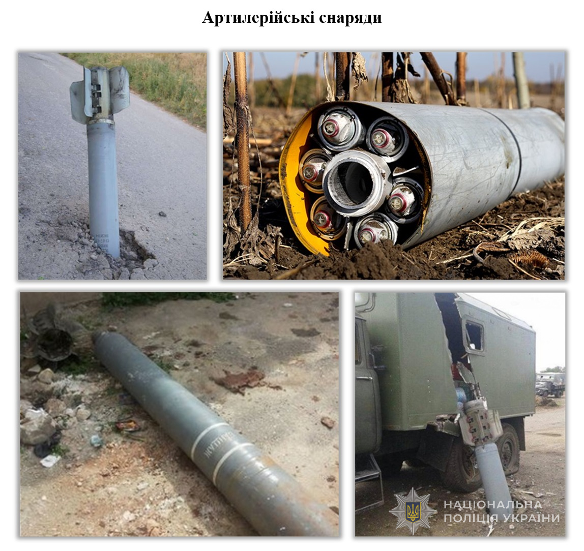 Для розпізнавання вибухонебезпечних предметів передивись та запам'ятай зовнішній вигляд та основні ознаки найпоширеніших з них.