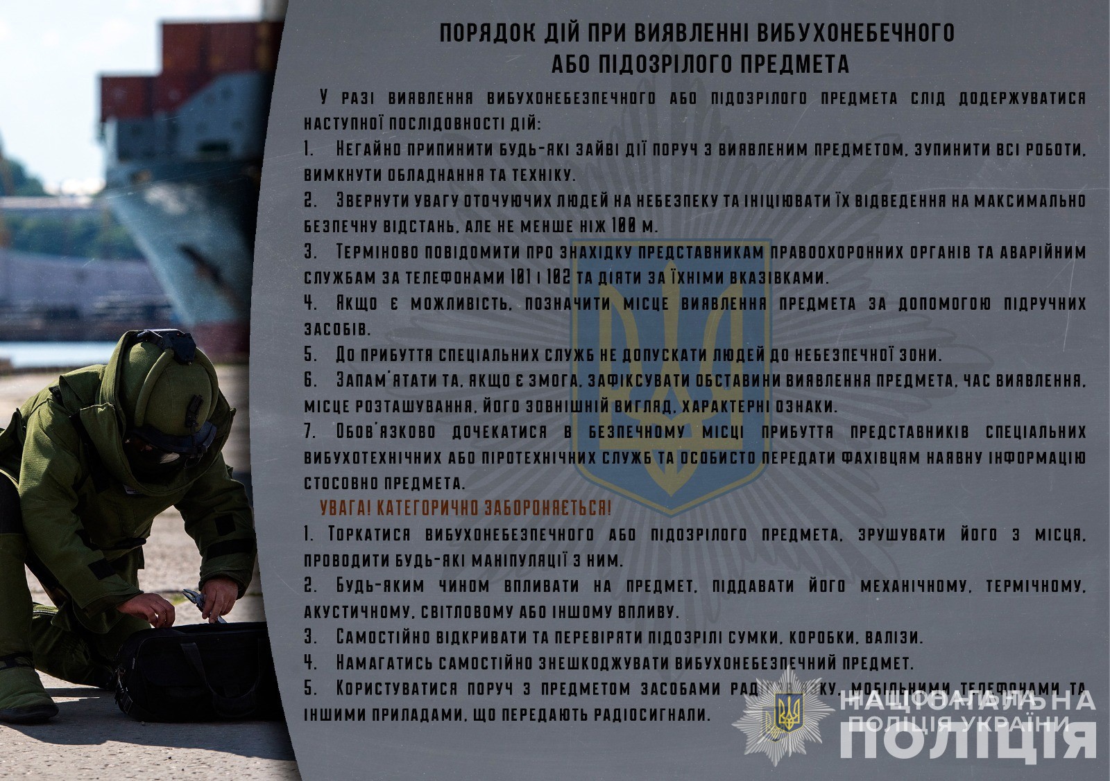 ПОРЯДОК ДІЙ ПРИ ВИЯВЛЕННІ ВИБУХОНЕБЕЗПЕЧНОГО